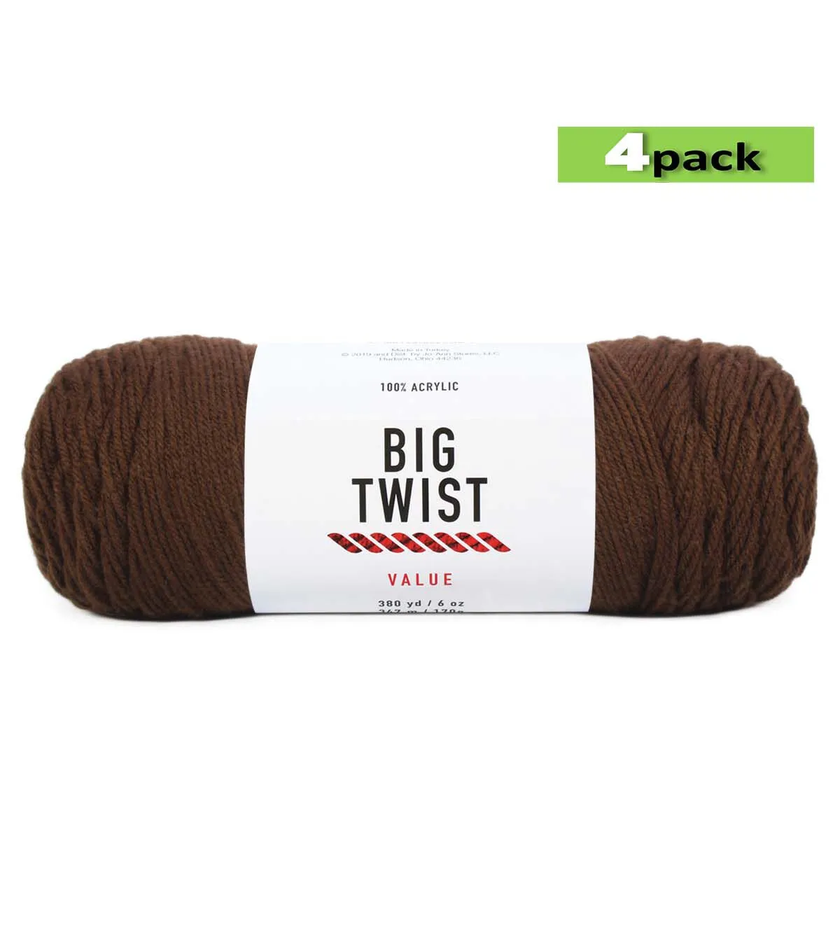 4pk Solid Chocolate Medium Weight Acrylic 380yd Value Yarn by Big Twist