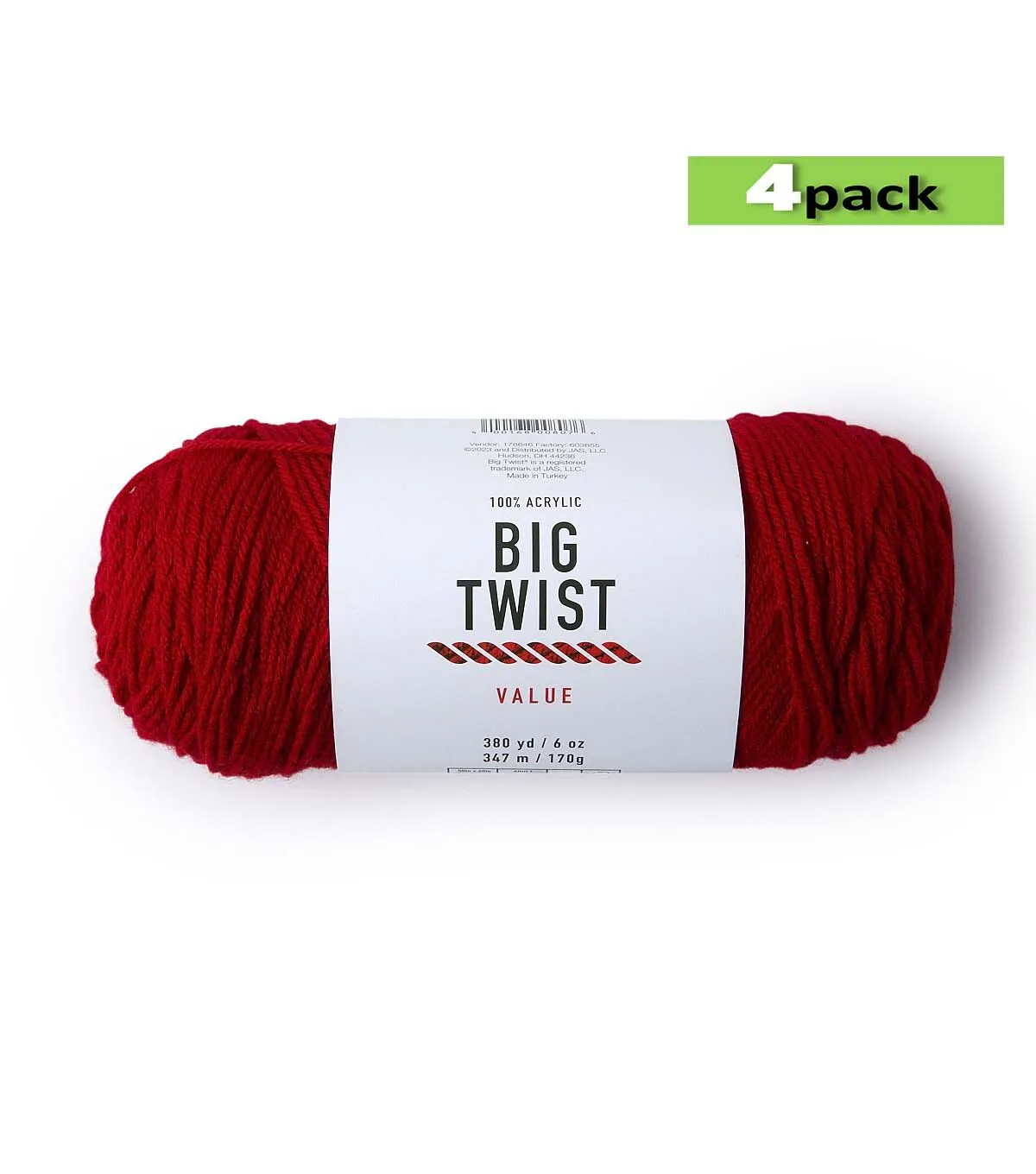 4pk Solid Deep Red Medium Weight Acrylic 380yd Value Yarn by Big Twist