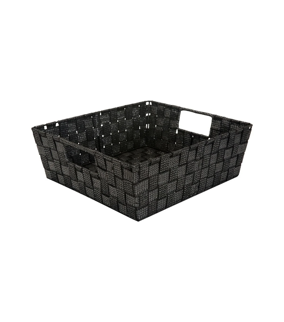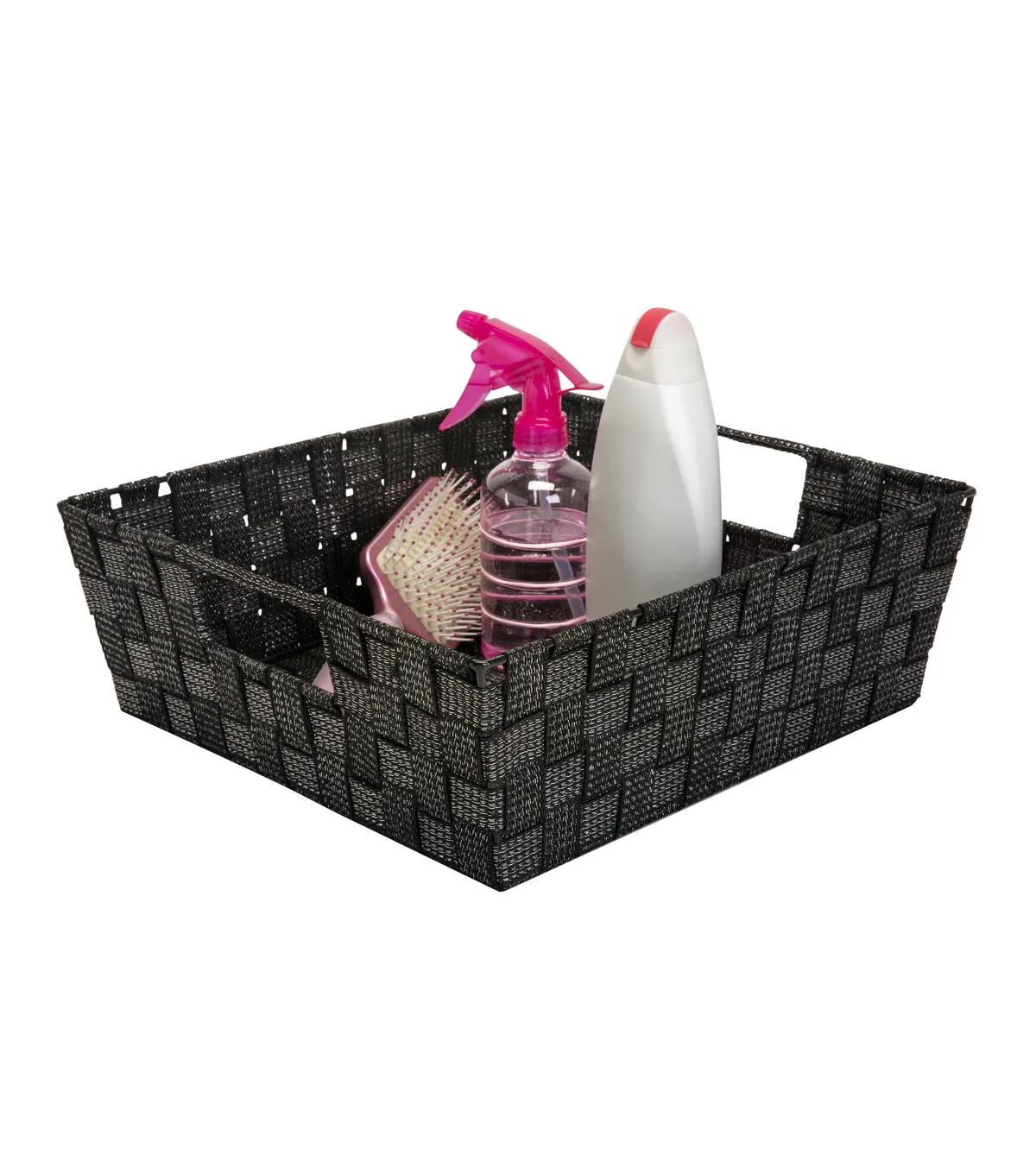 Simplify 13" x 5" Black & Silver Lurex Striped Woven Storage Shelf Bin