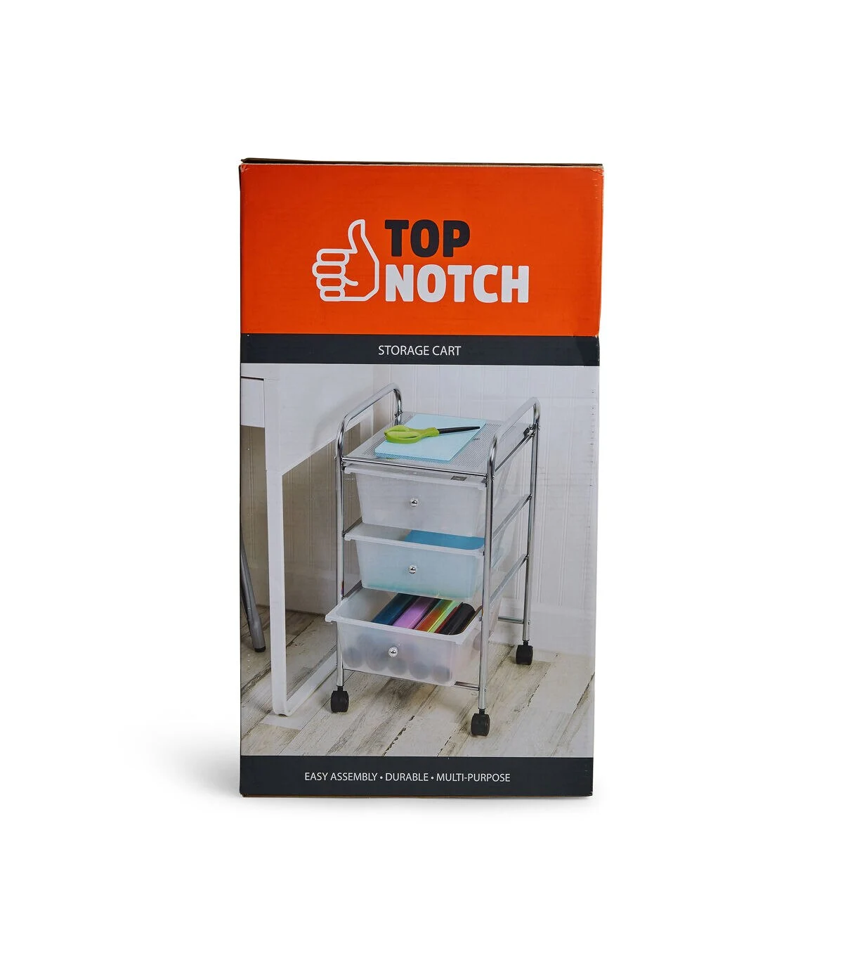 25" Steel Rolling Storage Cart With Clear Plastic 3 Drawers by Top Notch