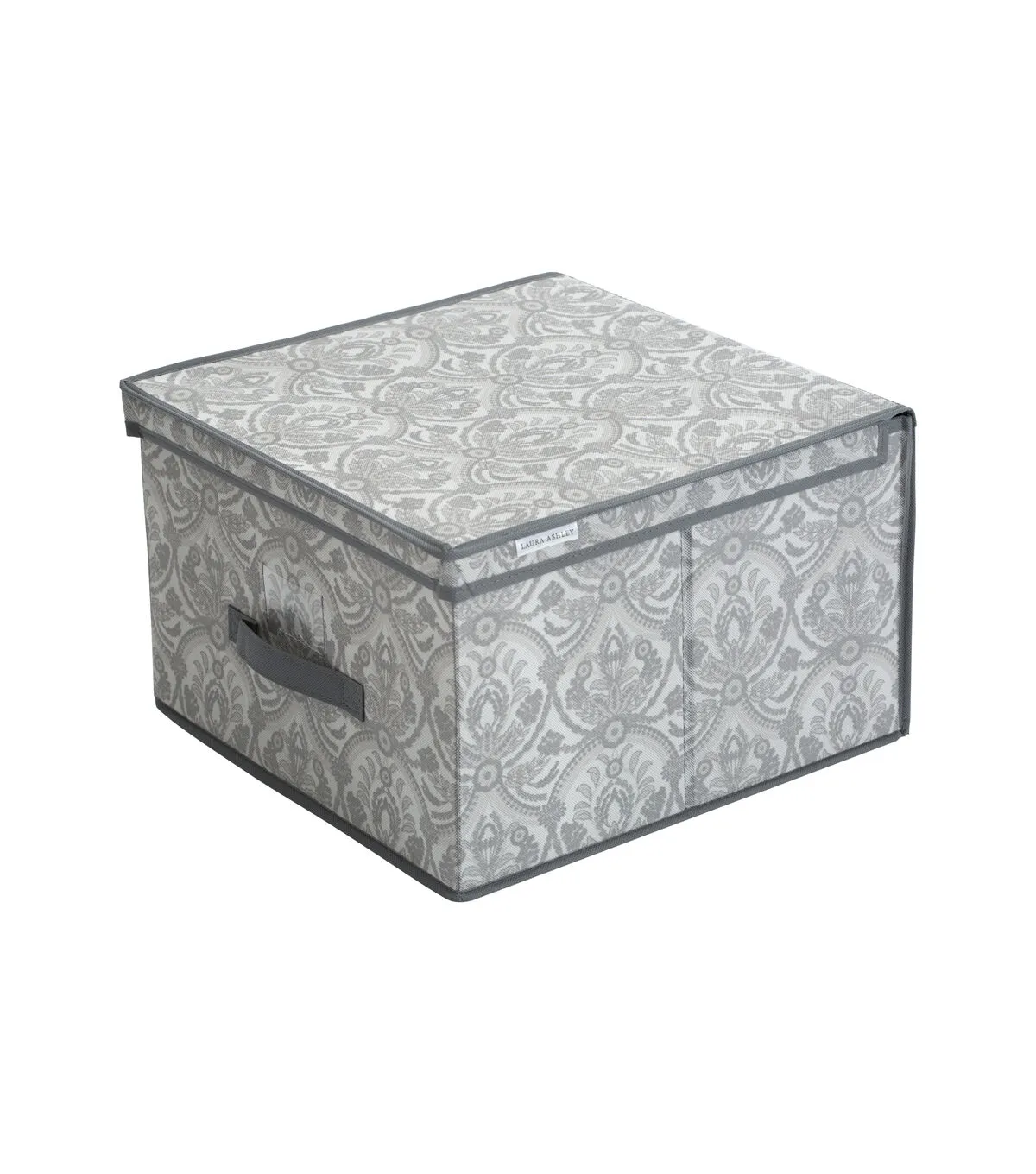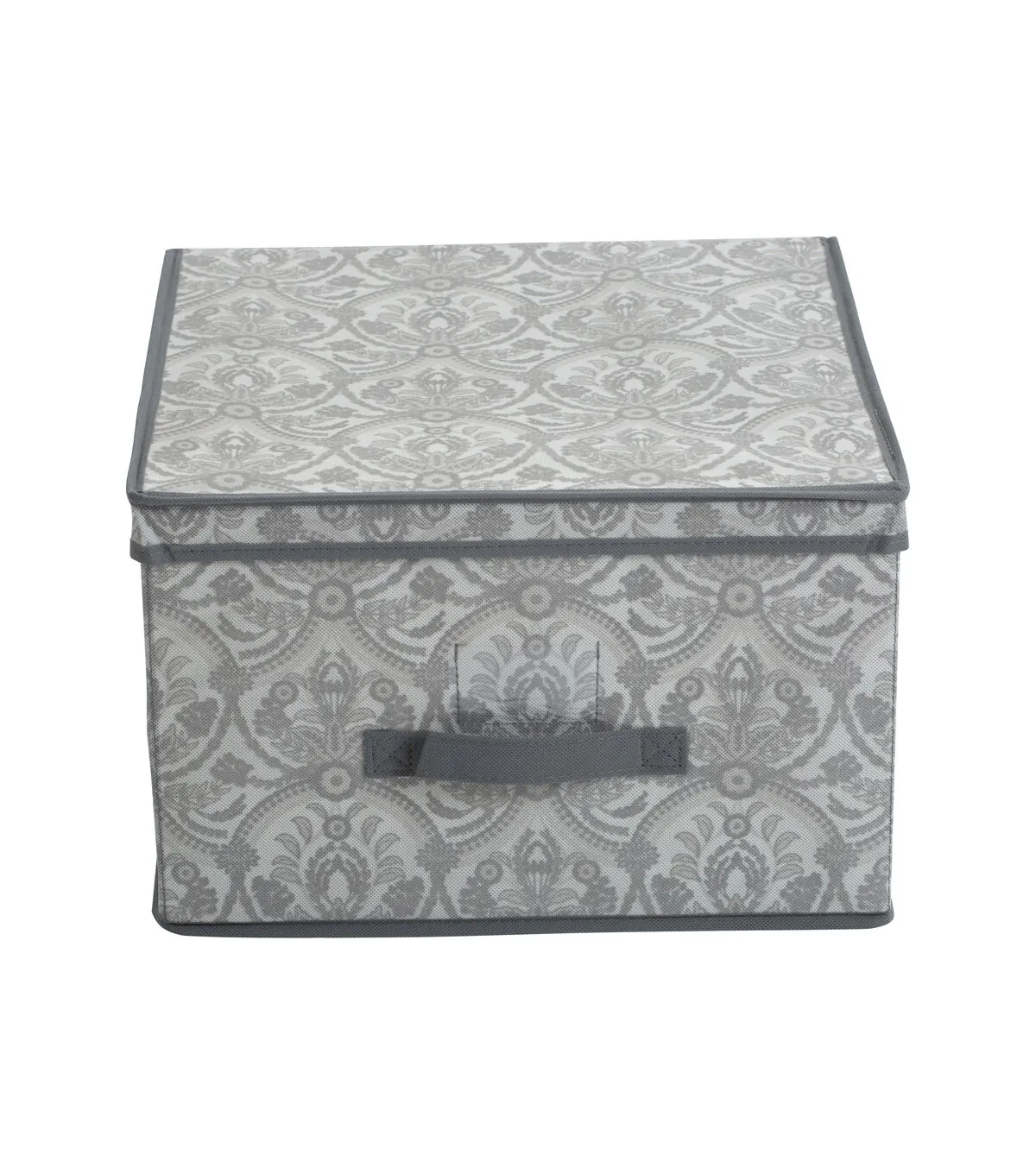 Simplify 10" x 8" Gray Lurex Striped Woven Storage Bin With Handles