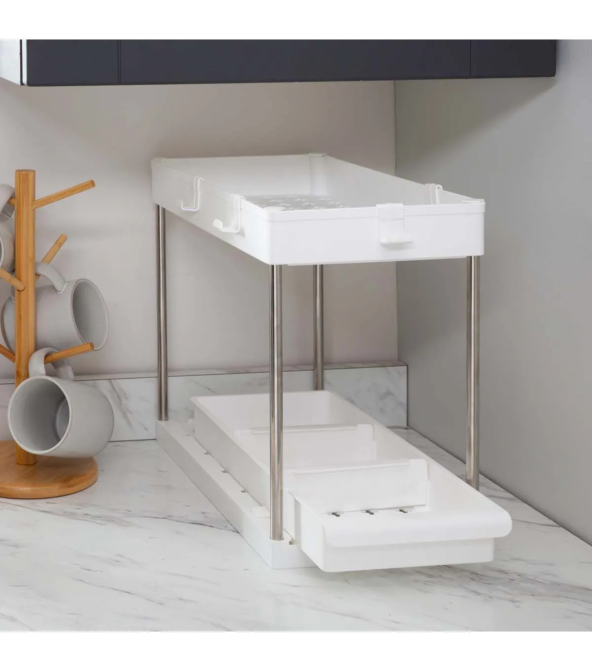 Simplify 16" x 9" White 2 Tier Multipurpose Storage Shelf