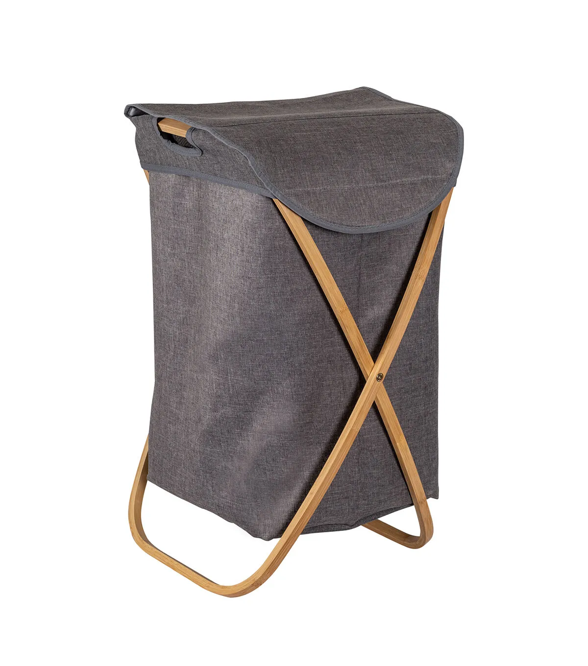 Honey Can Do 16" x 27.5" Gray & Natural Bamboo Folding Hamper With Lid