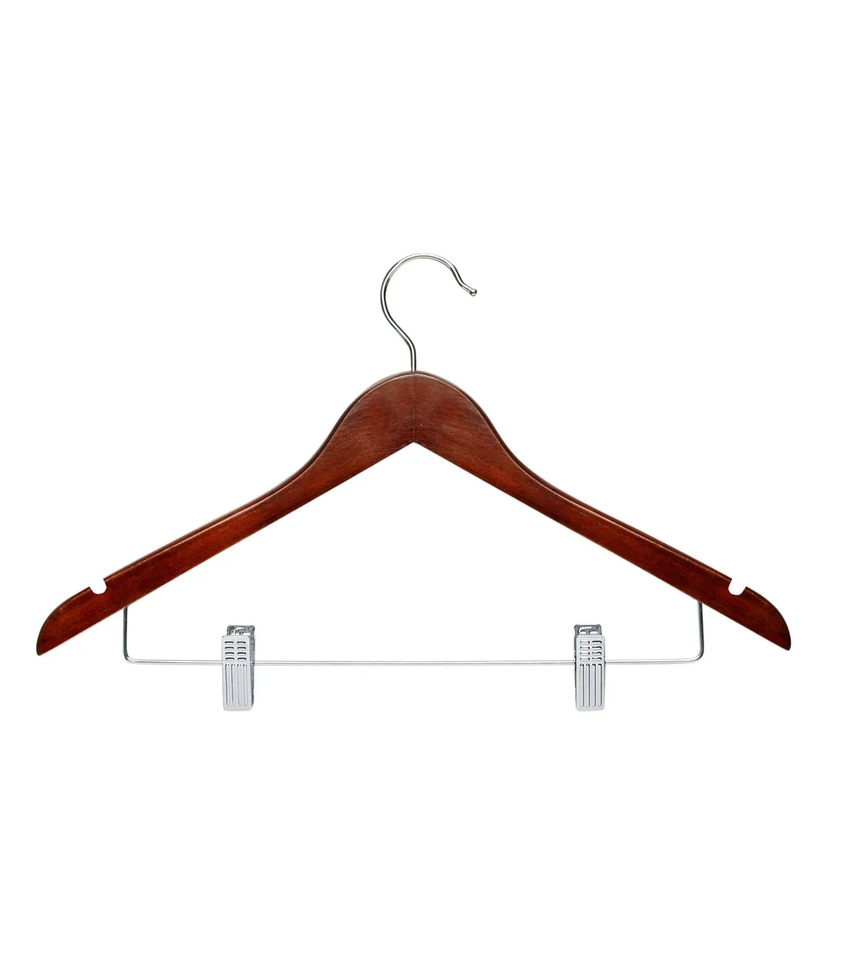 Honey Can Do 17.5" x 10" Cherry Wood Suit Hangers With Clips 12pk