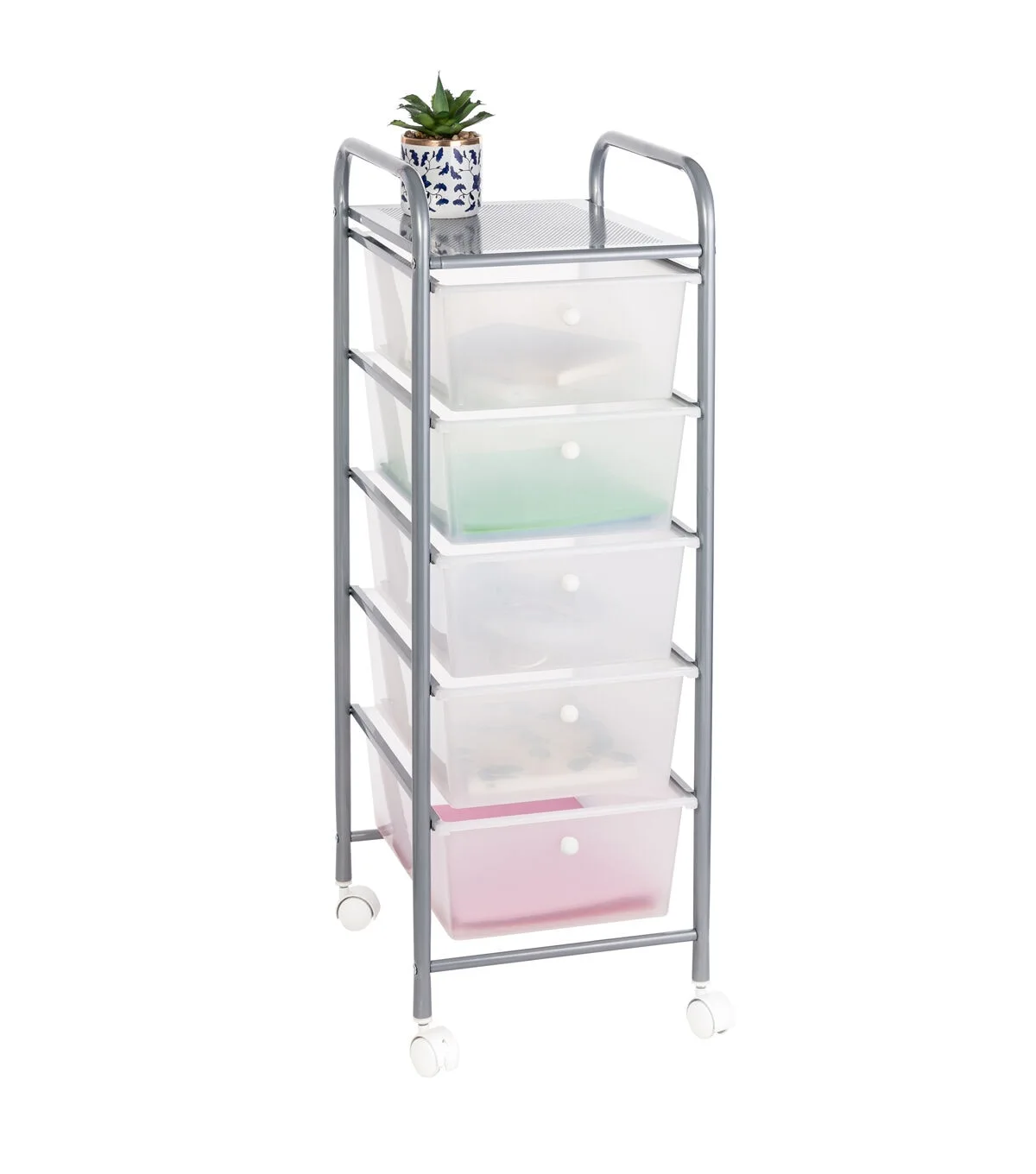 Honey Can Do 12.5" x 37" Clear & Silver Plastic 5 Drawer Storage Cart