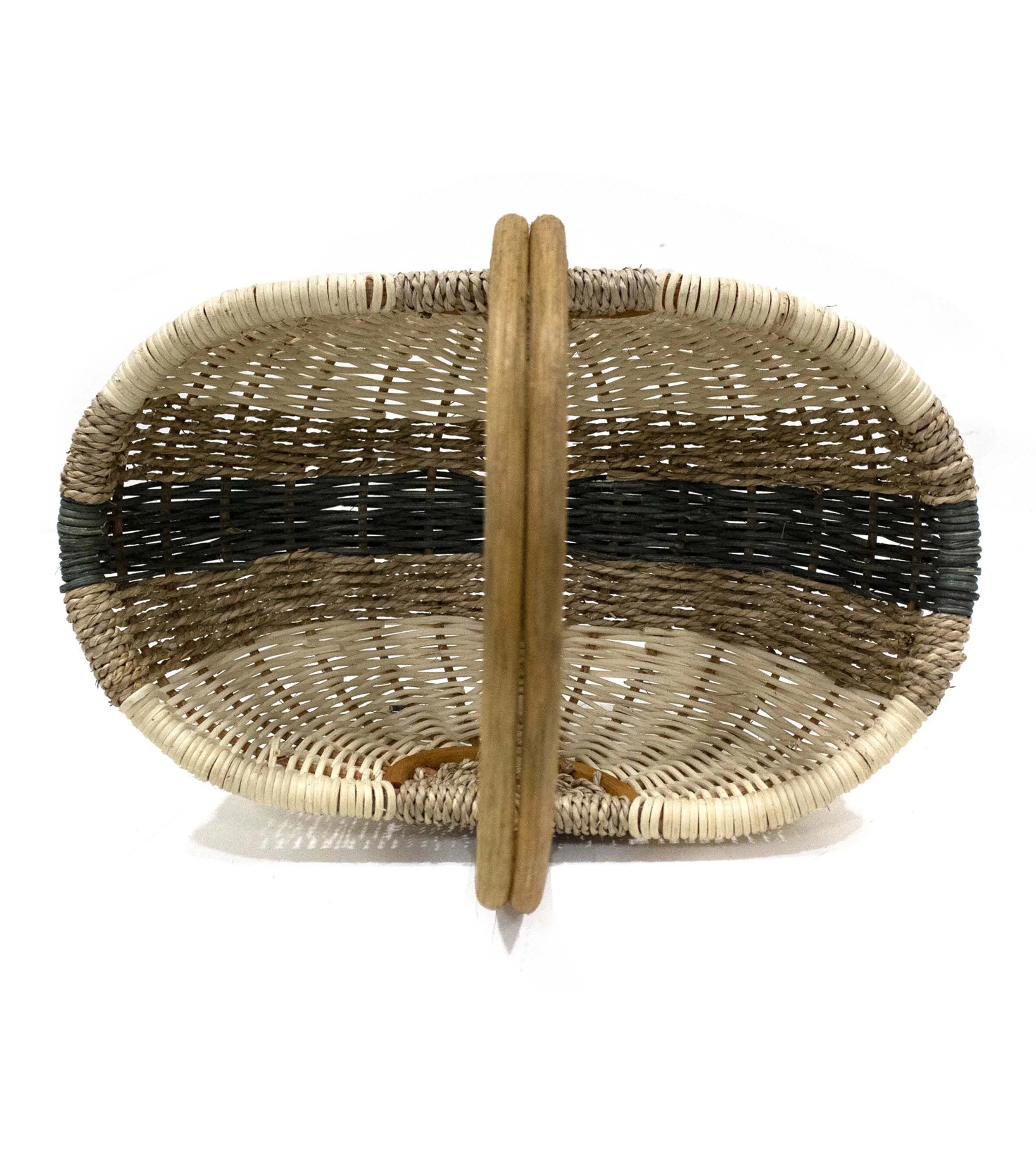 12" x 8" Seagrass & Rattan Basket With Handle by Place & Time
