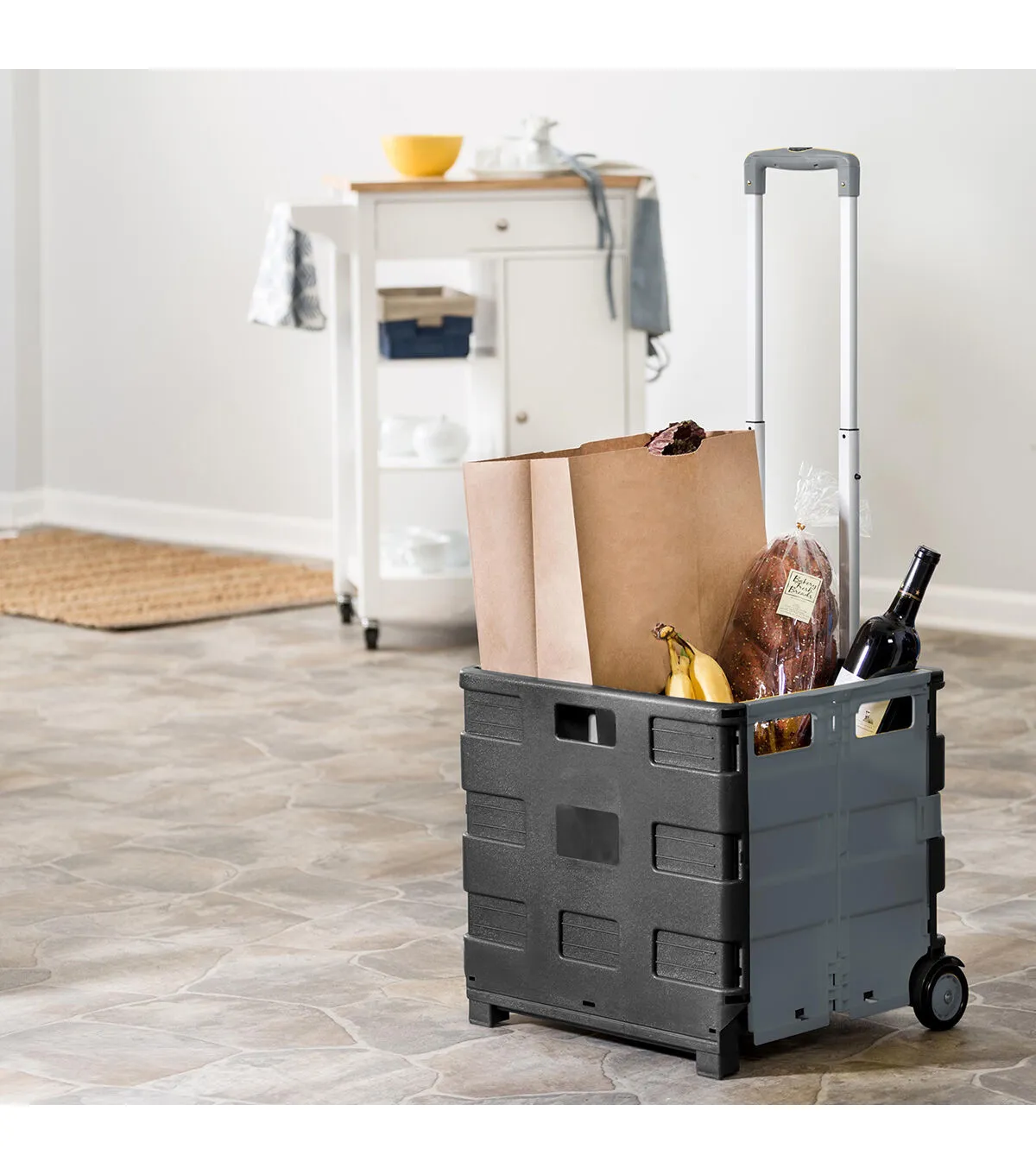 Honey Can Do 18" x 39" Gray Foldup Rolling Utility Cart With Handle