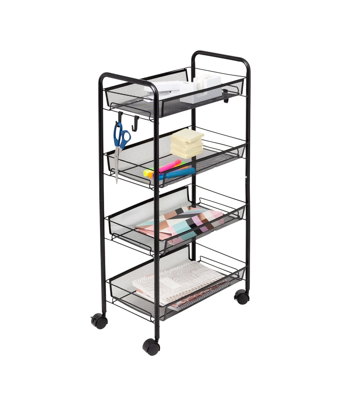 Honey Can Do 17.5" x 33" Black 4 Tier Metal Storage Cart With 5 Hooks