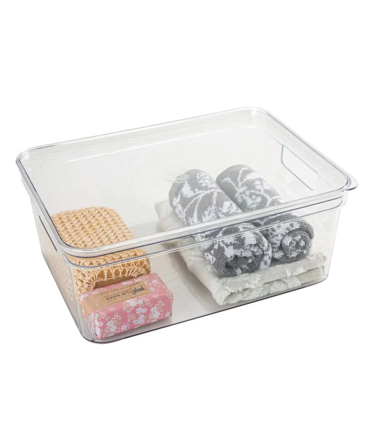 Simplify 14" x 5.5" Clear Lidded Storage Bin With Handles