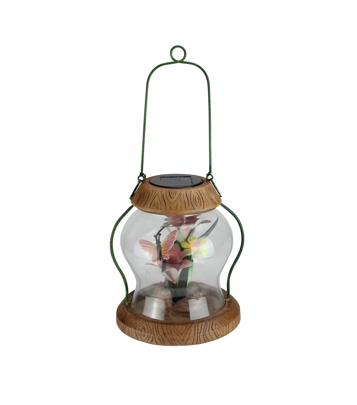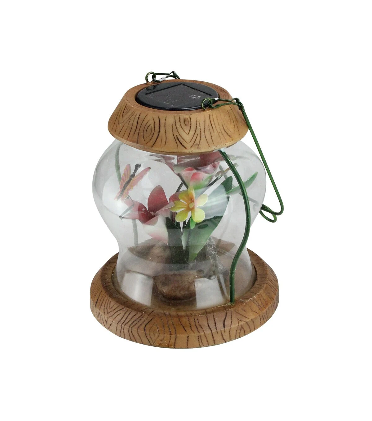 Northlight 7" LED Bronze Solar Lantern With Flowers