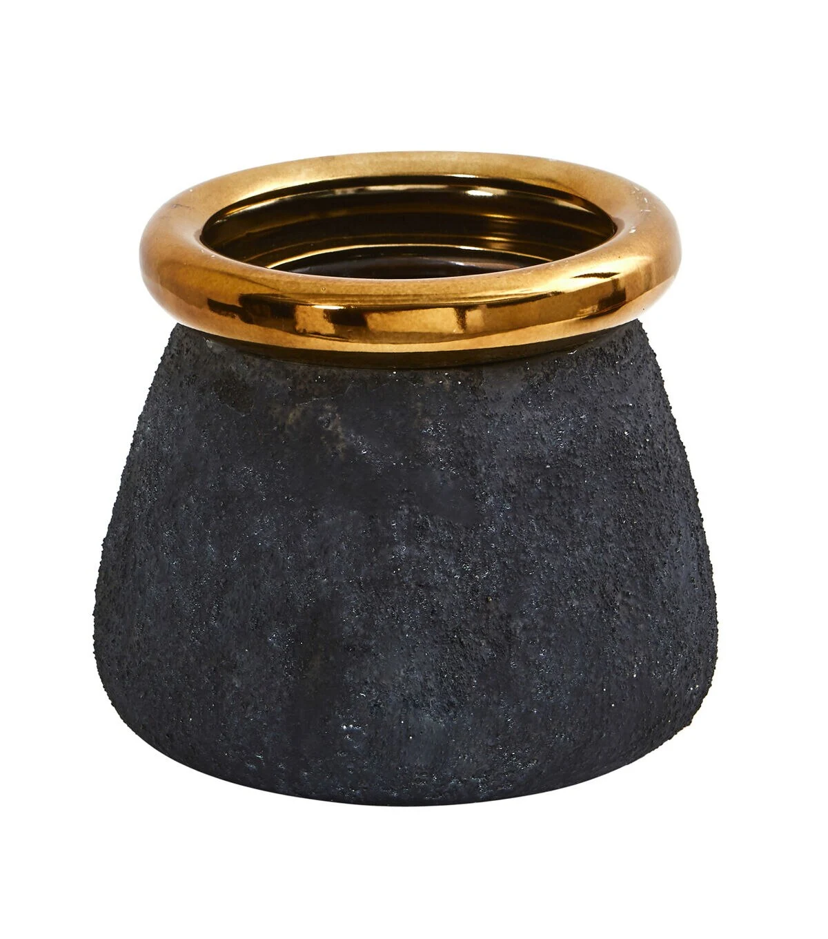 Nearly Natural 10" Black Stone Planter With Bronze Rim