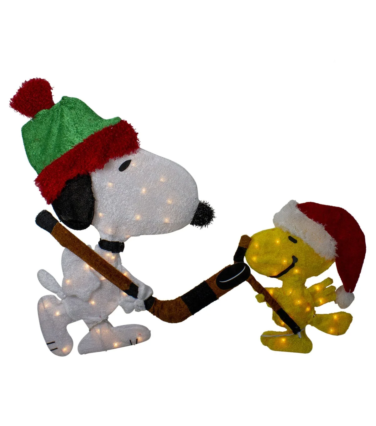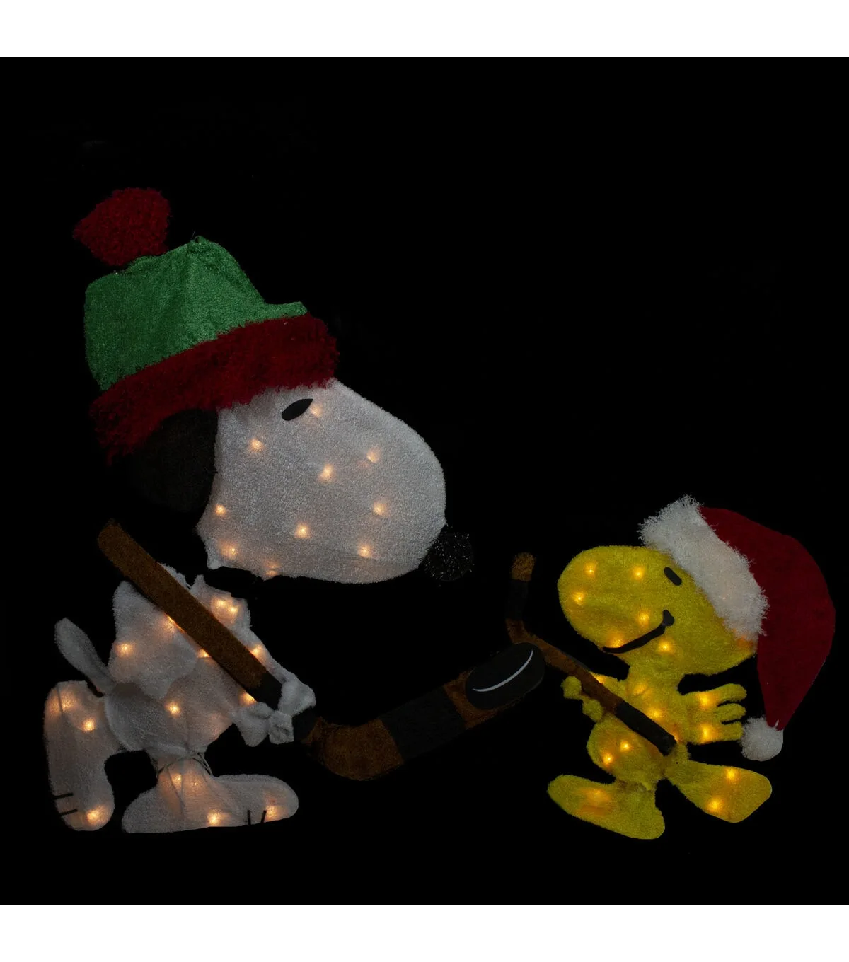 Northlight 28" Christmas Lighted Snoopy & Woodstock Play Hockey