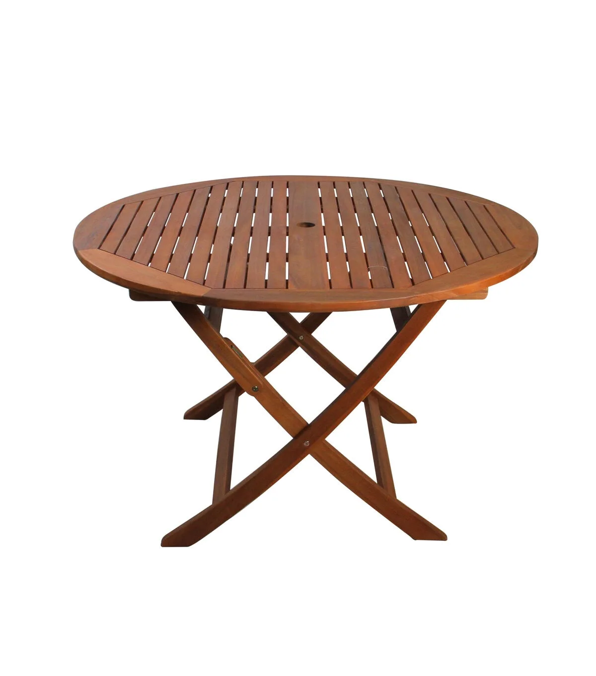 Northlight 47" Brown Round Wood Folding Outdoor Patio Dining Table