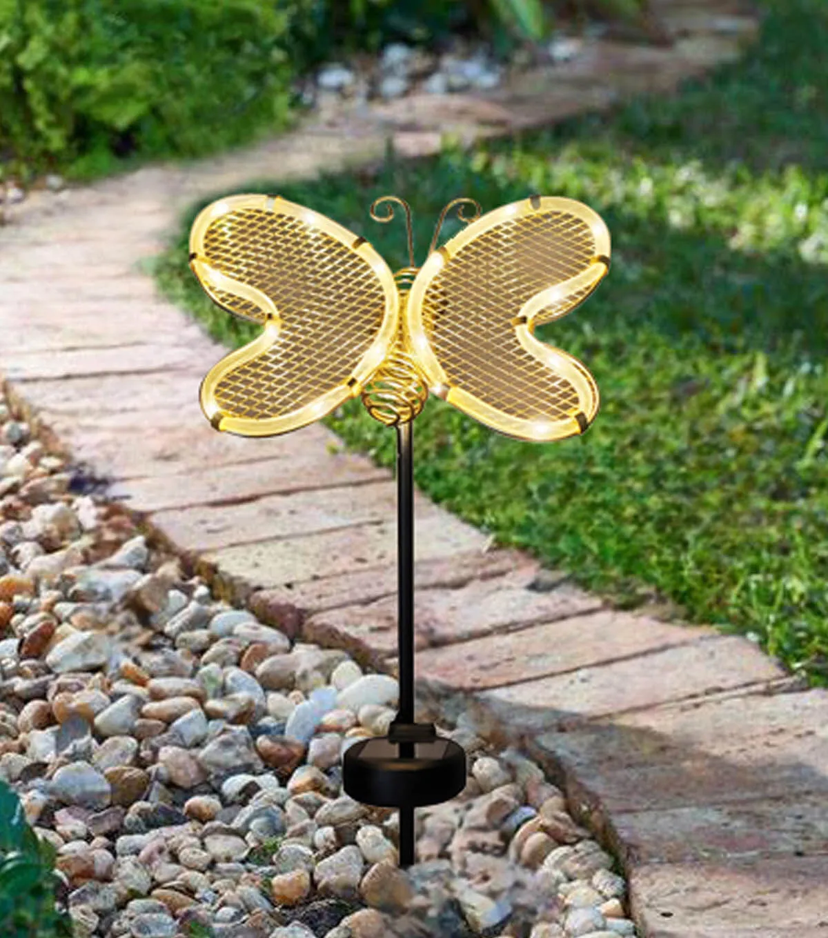 36" Spring Gold Iron Butterfly Solar Yard Stake by Place & Time