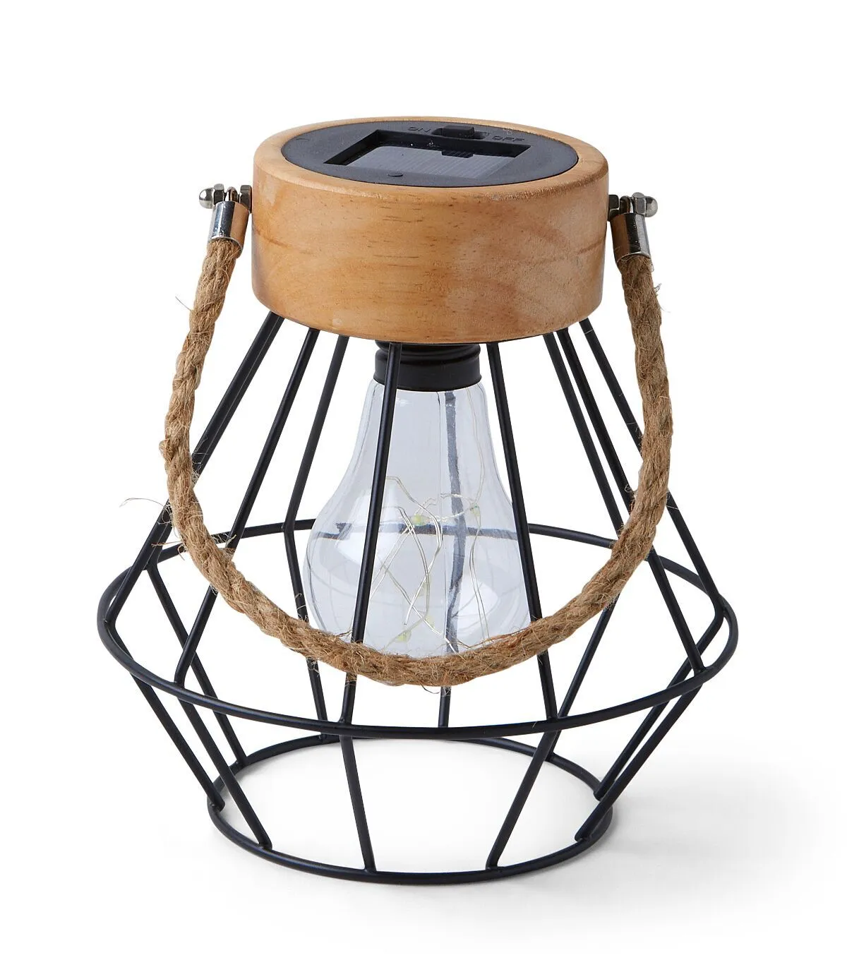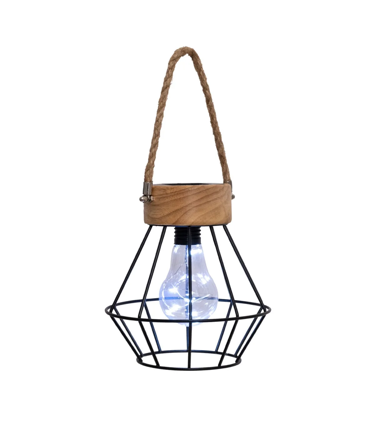 7" Summer Black Iron & Wood Solar Lantern by Place & Time