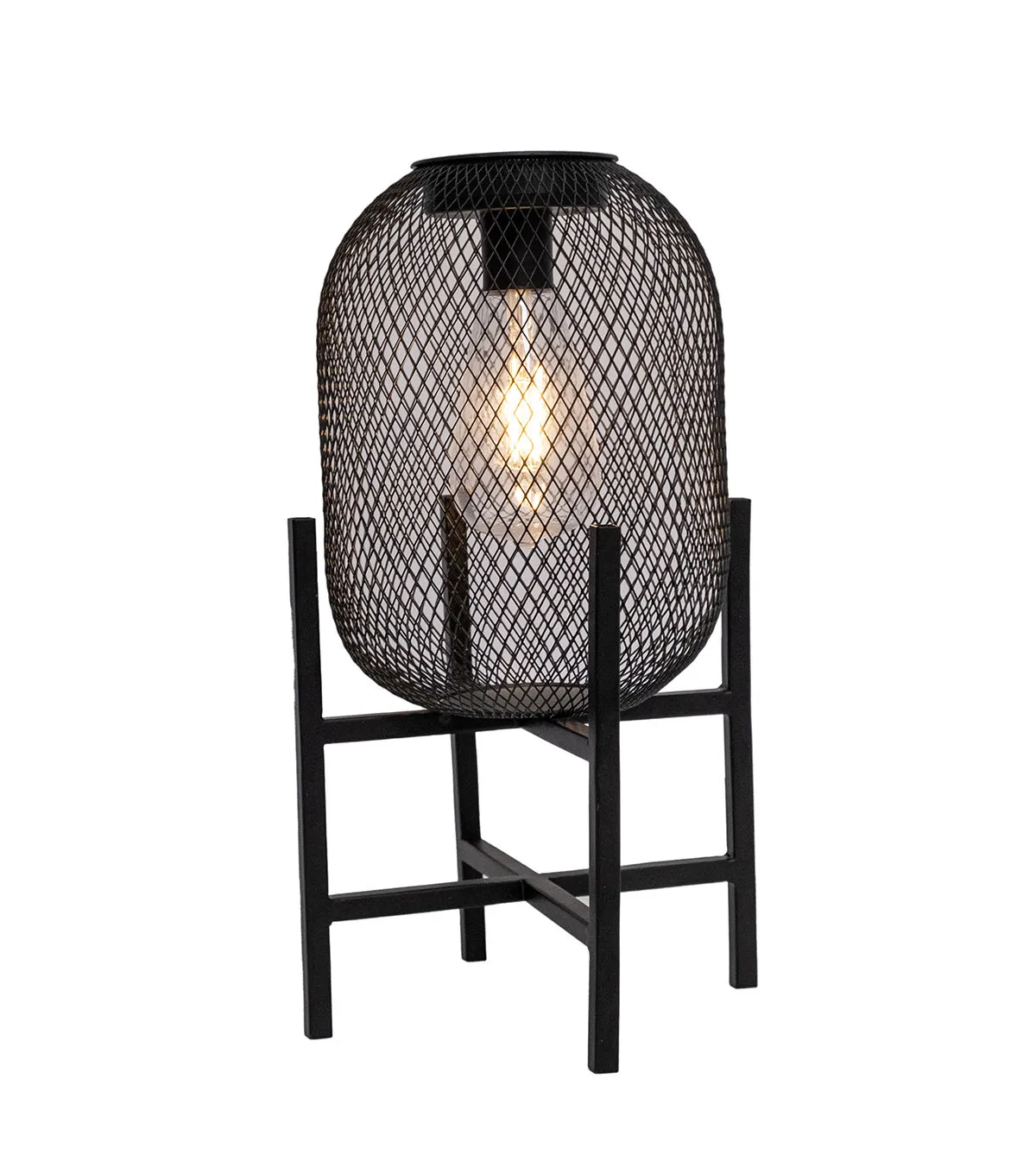 14" Summer Black Caged Iron Solar Lantern With Legs by Place & Time