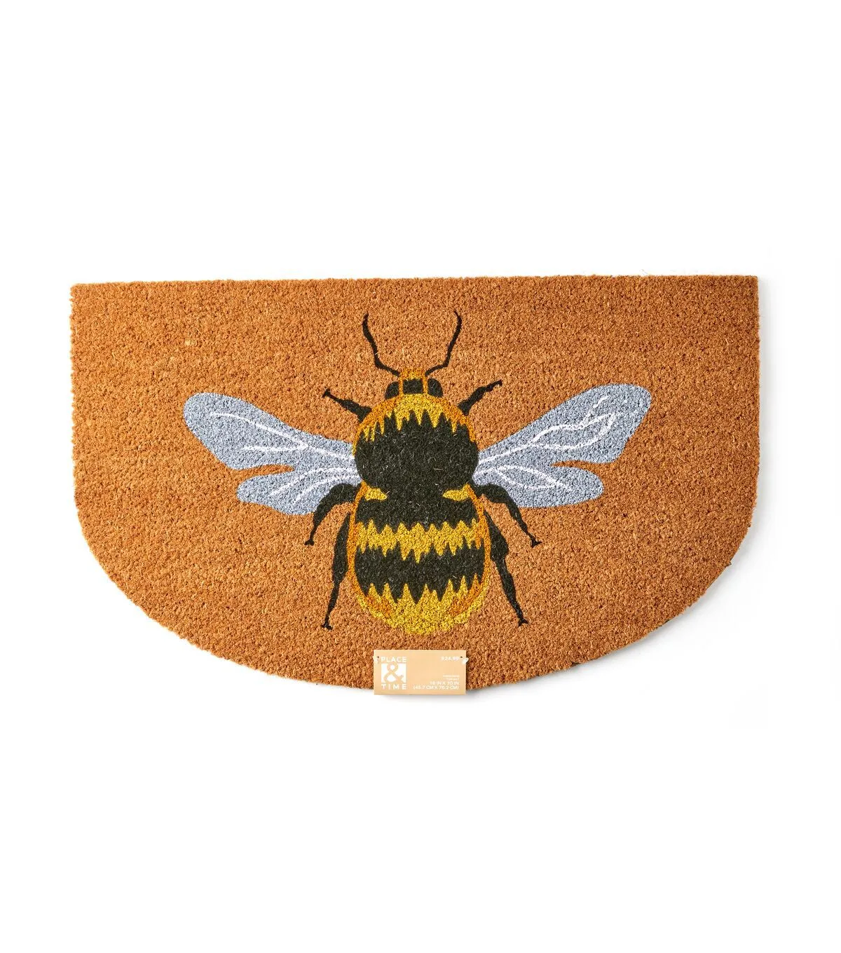 18" x 30" Spring Bee Icon on Brown Coir Door Mat by Place & Time