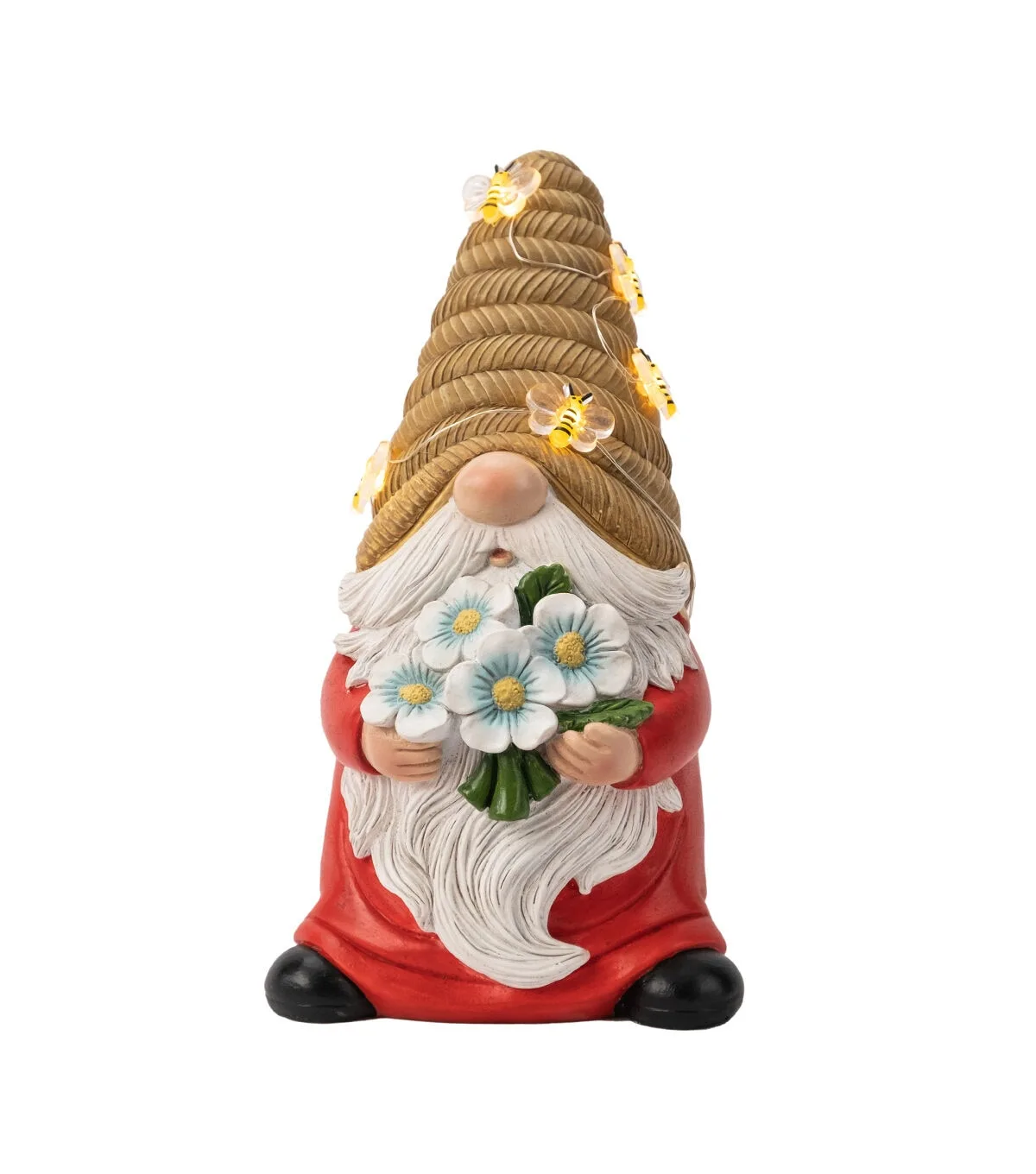 9" Spring Gnome With Bee Hat Outdoor Solar Garden Statue by Place & Time