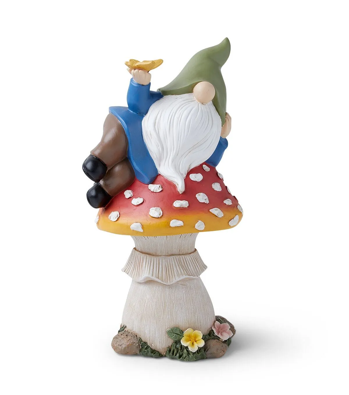 10" Spring Gnome on Mushroom Outdoor Garden Statue by Place & Time