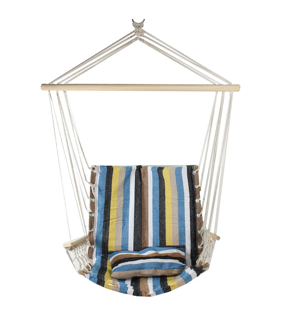 Northlight 37" Brown & Yellow Striped Outdoor Hammock With Pillow