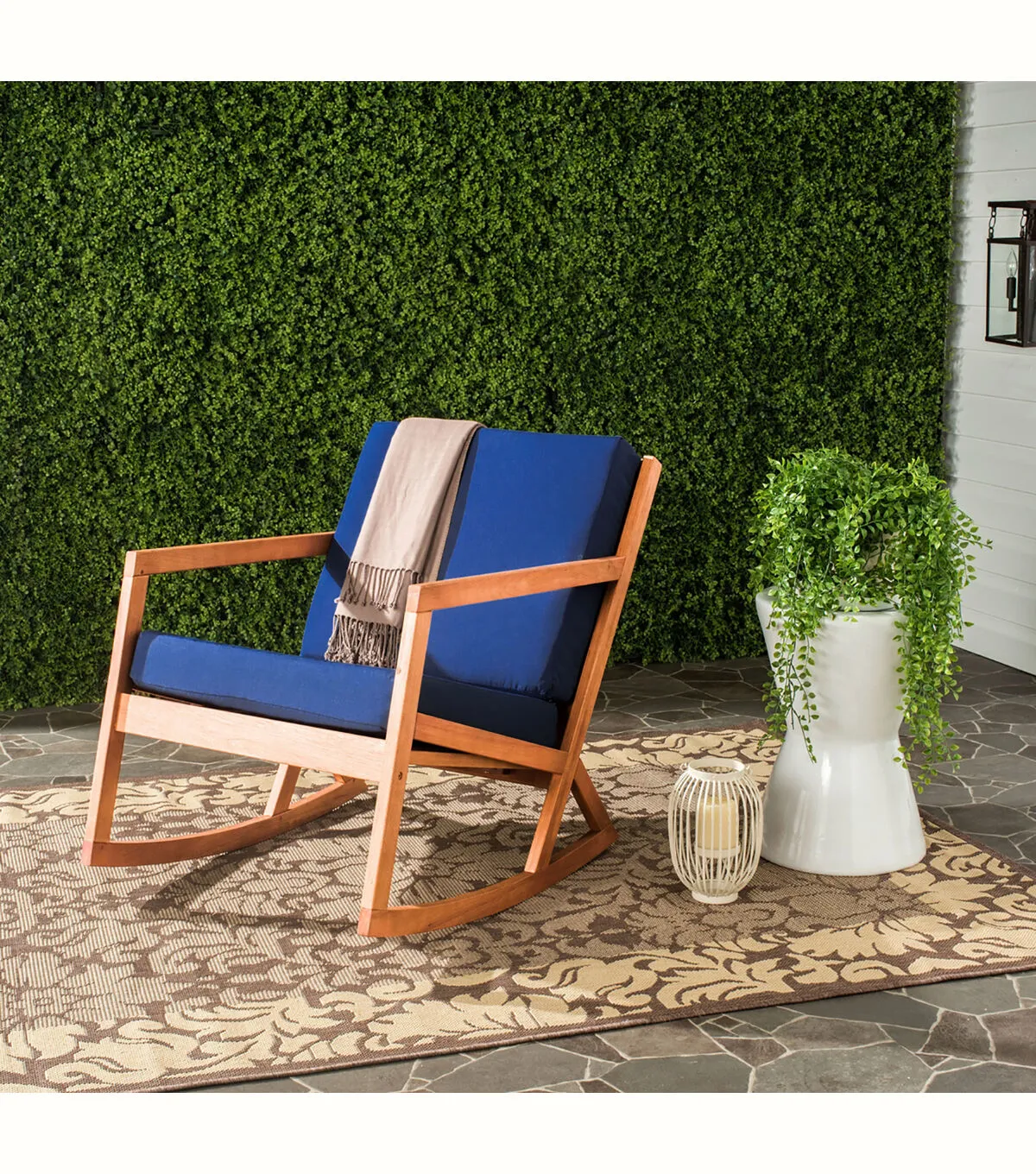 Safavieh 26" x 38" Natural & Navy Vernon Outdoor Rocking Chair