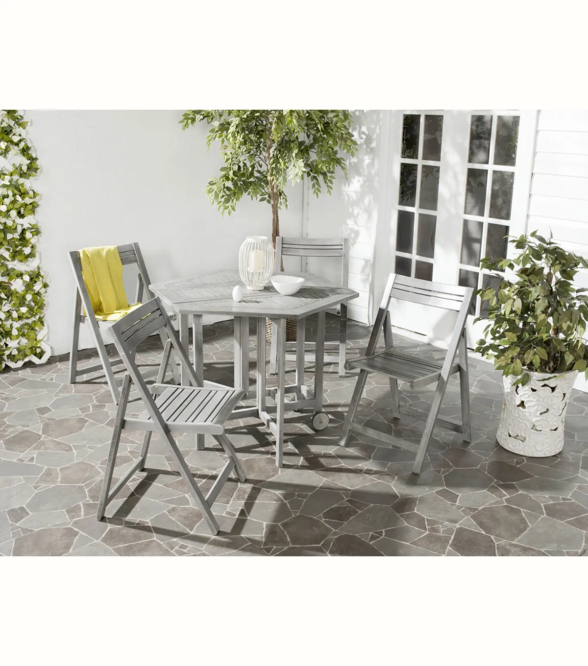 Safavieh Kerman Gray Wash Outdoor Table With 4pc Foldable Chair Set
