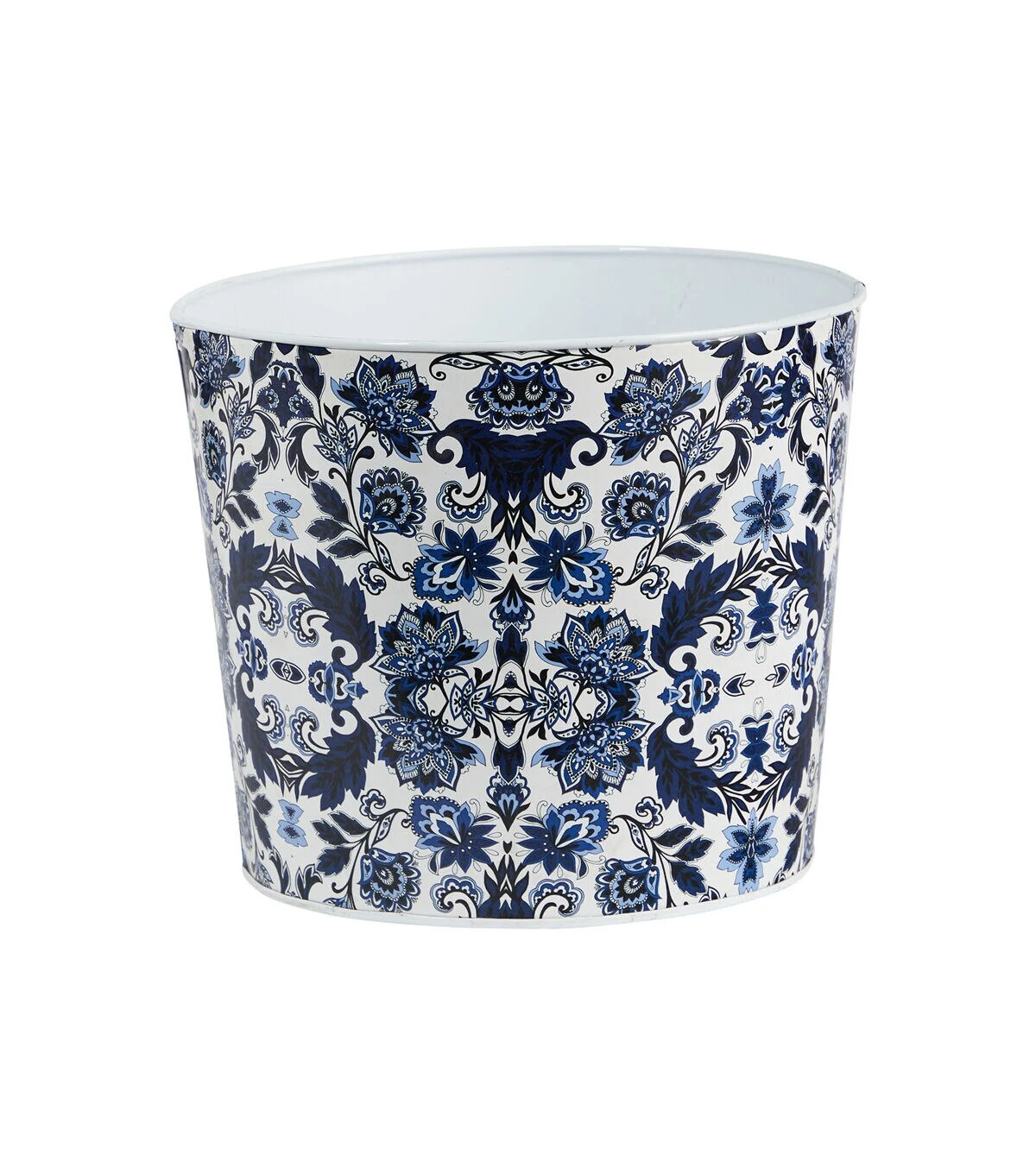 Nearly Natural 12" Oriental Blue & White Metal Planter