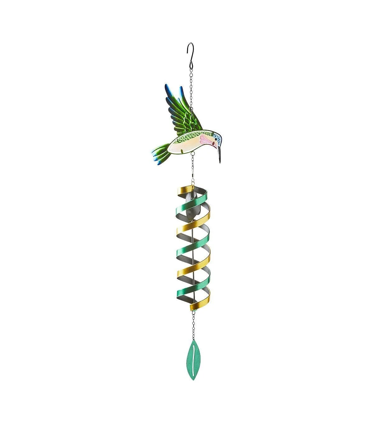 31" Spring Green Glass Hummingbird Spinner Windchime by Place & Time