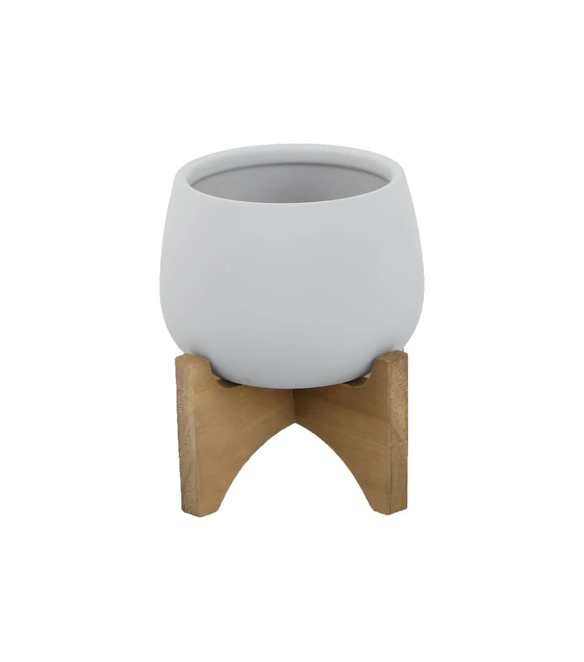 Flora Bunda 5" Soft Touch Round Ceramic Planter on Wood Stand