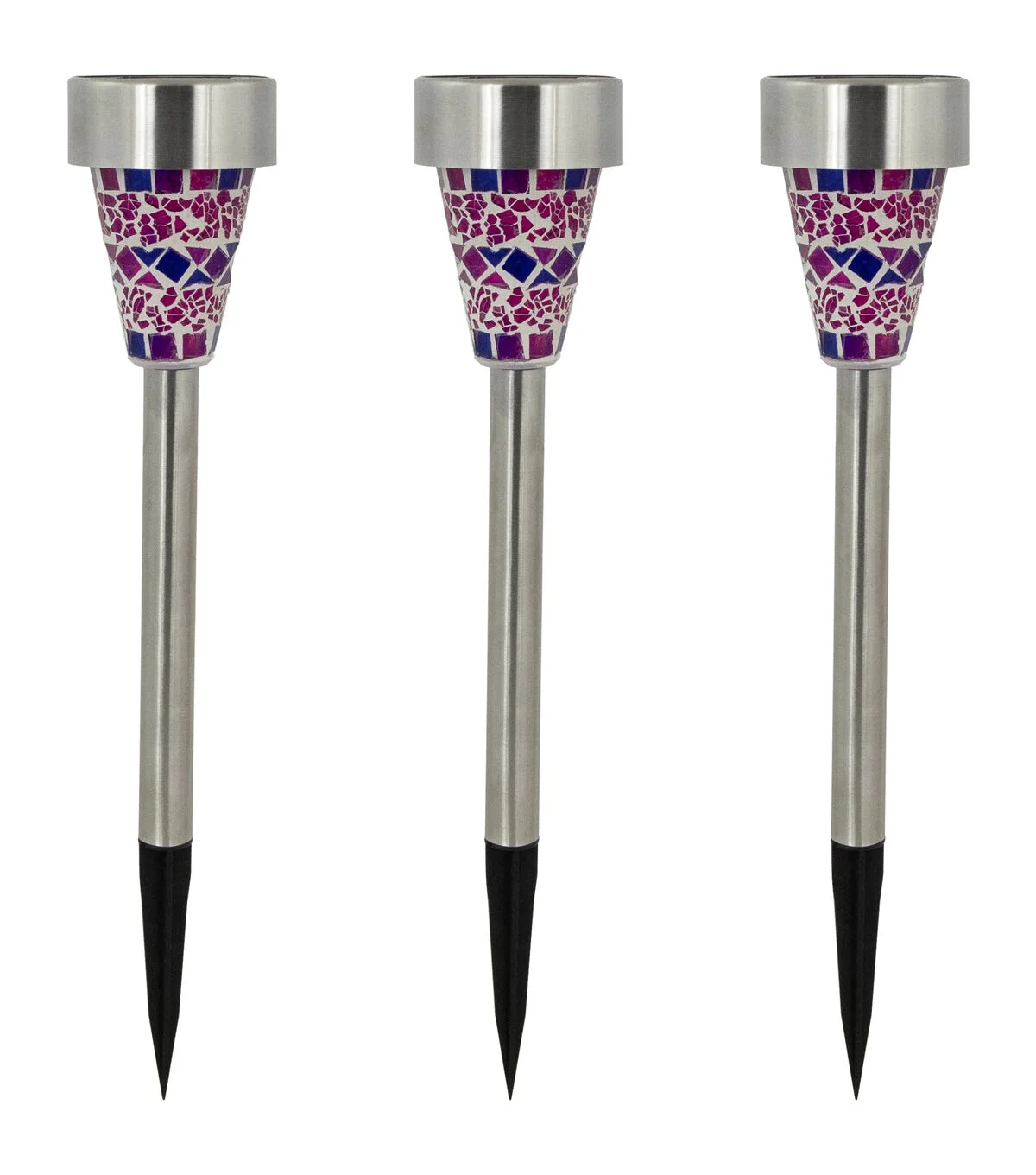 Northlight 15.5" LED Purple Mosaic Solar Powered Pathway Markers 3pk