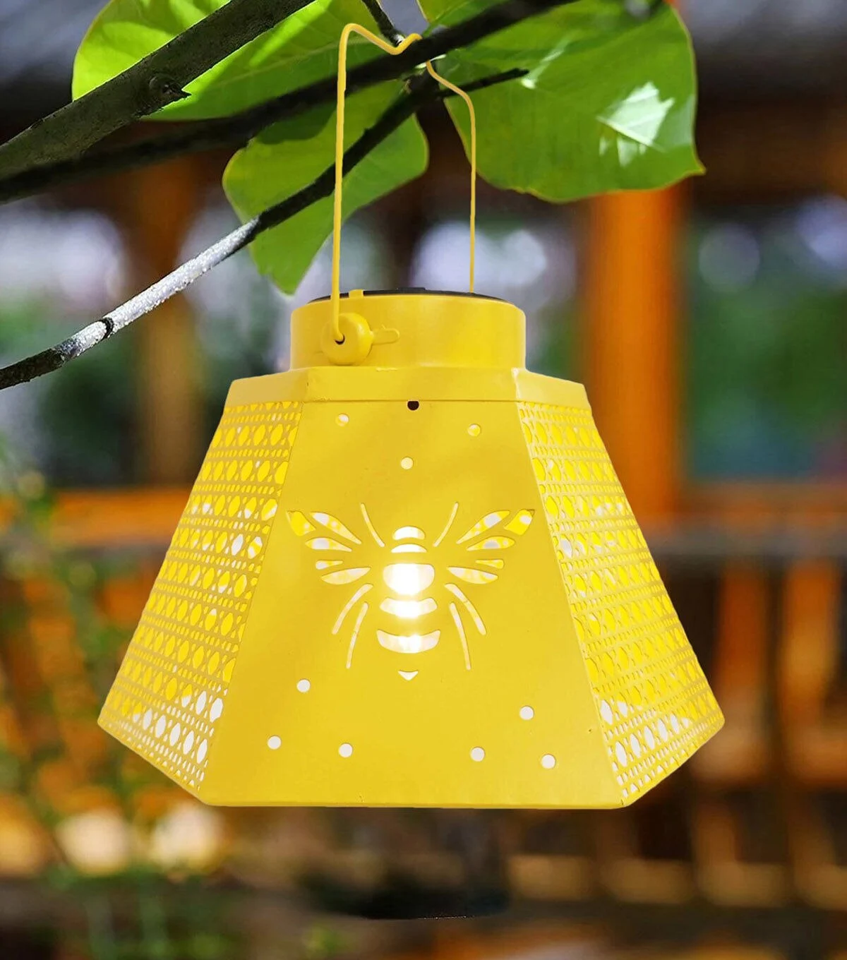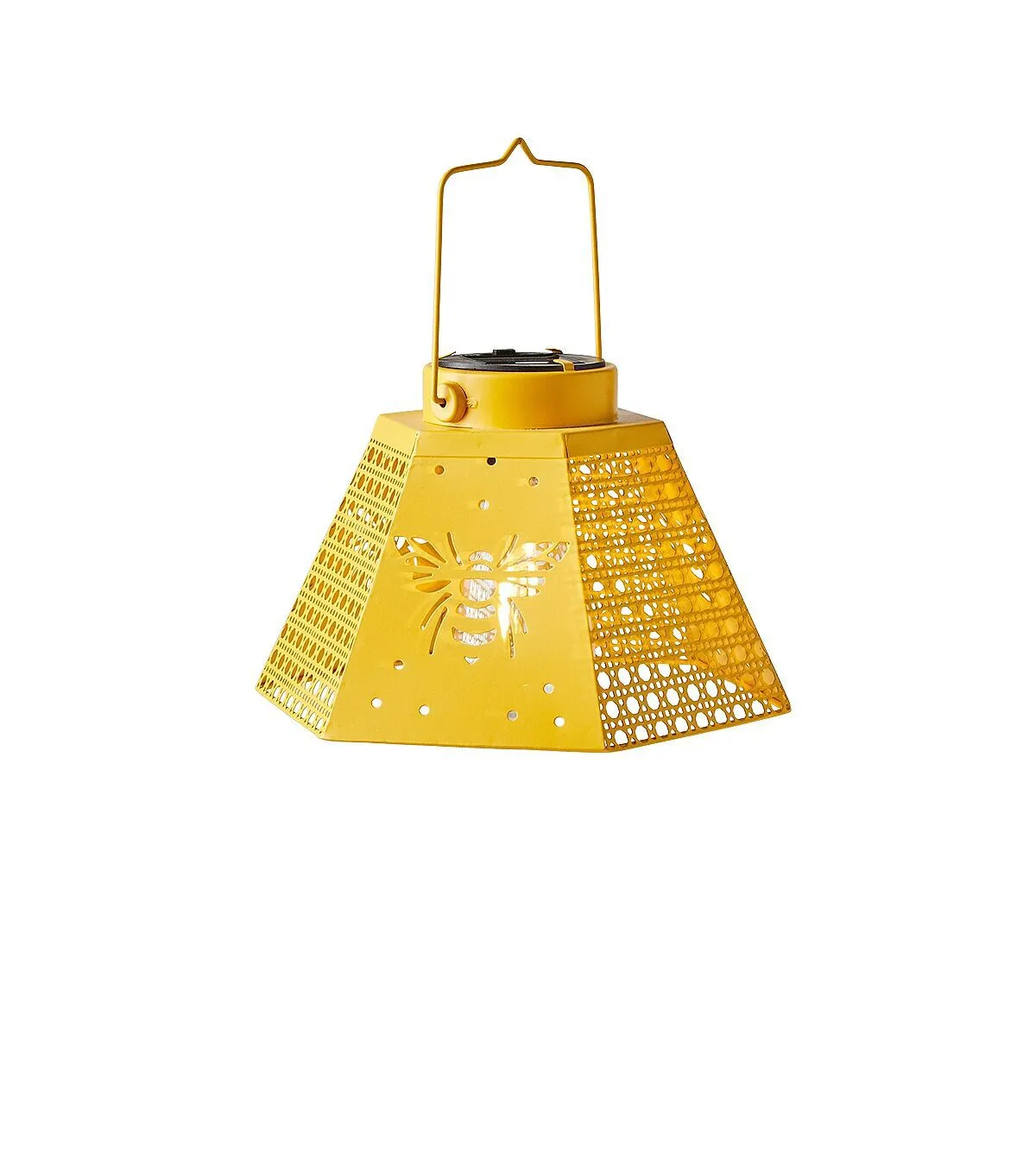 9" Summer Yellow Iron Bee Solar Lantern by Place & Time