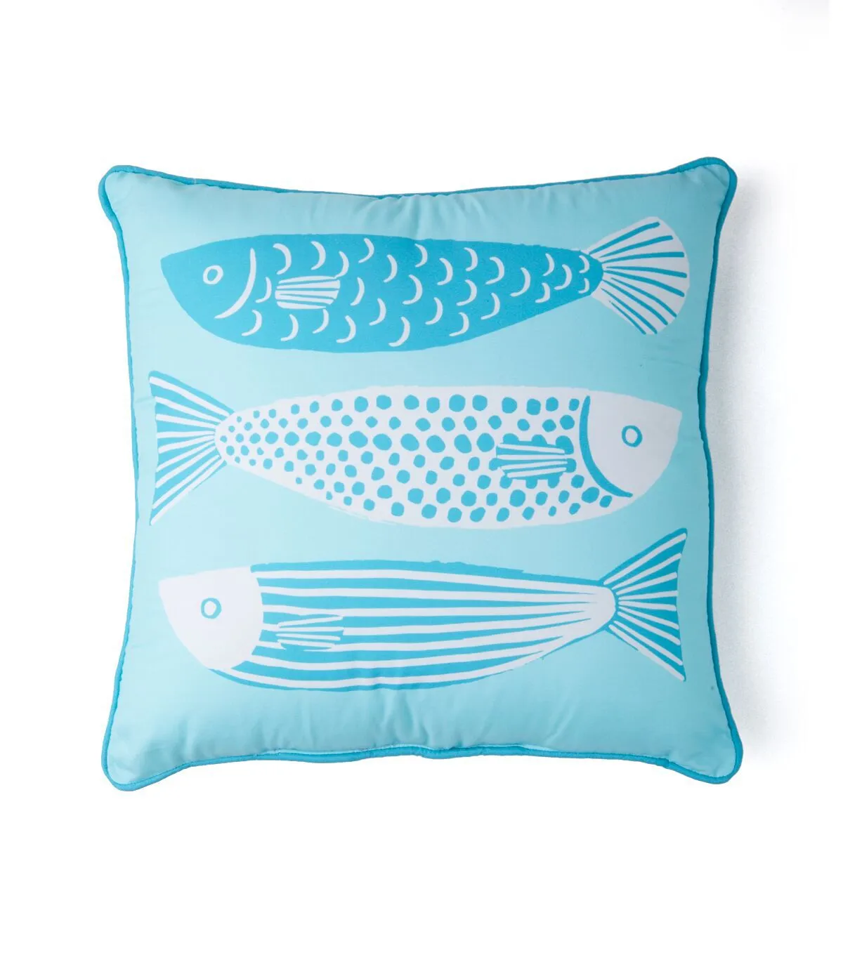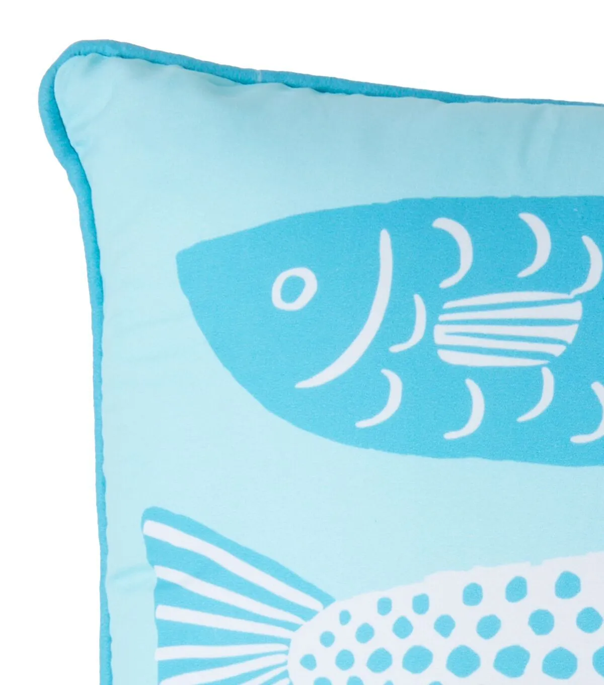 18" x 18" Summer Blue Stacked Fish Reversible Outdoor Pillow by Place & Time