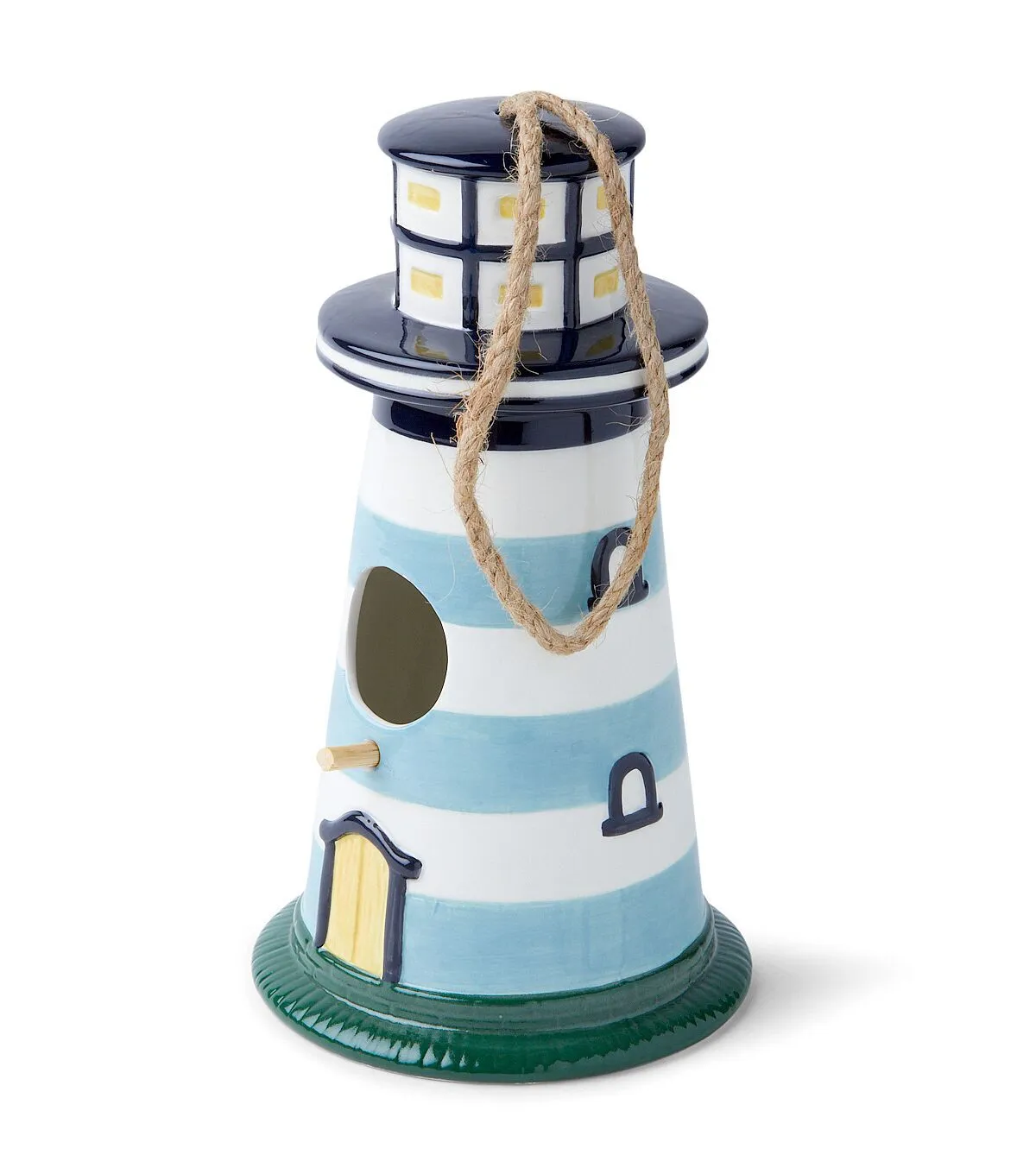 9" Summer Blue Striped Ceramic Lighthouse Birdhouse by Place & Time
