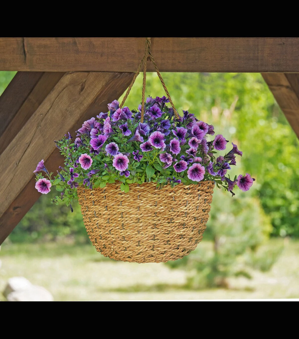 14" Spring Hanging Seagrass Basket Planter by Place & Time