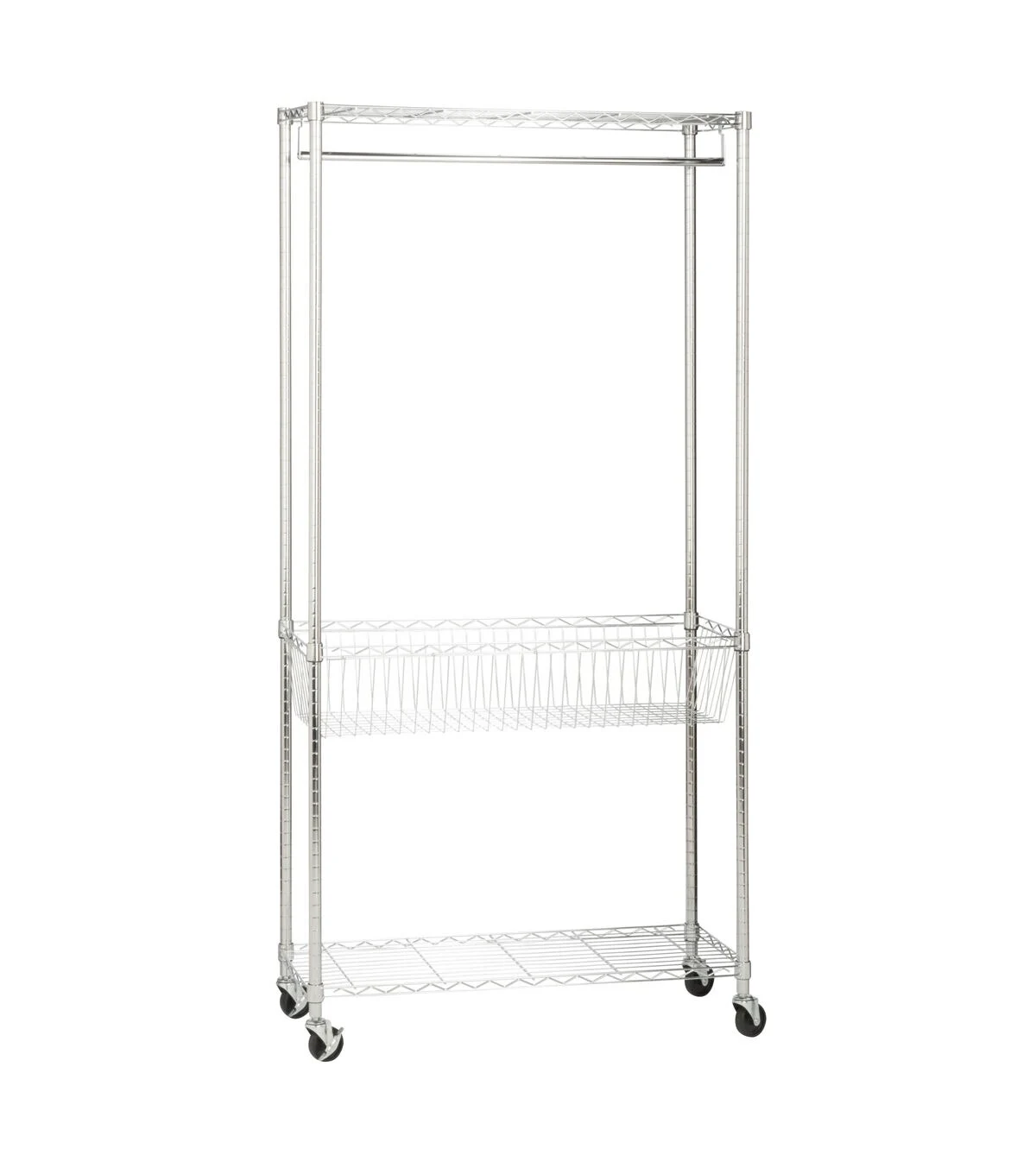 Honey Can Do 36" x 76" Chrome Rolling Laundry Clothes Rack With Shelves