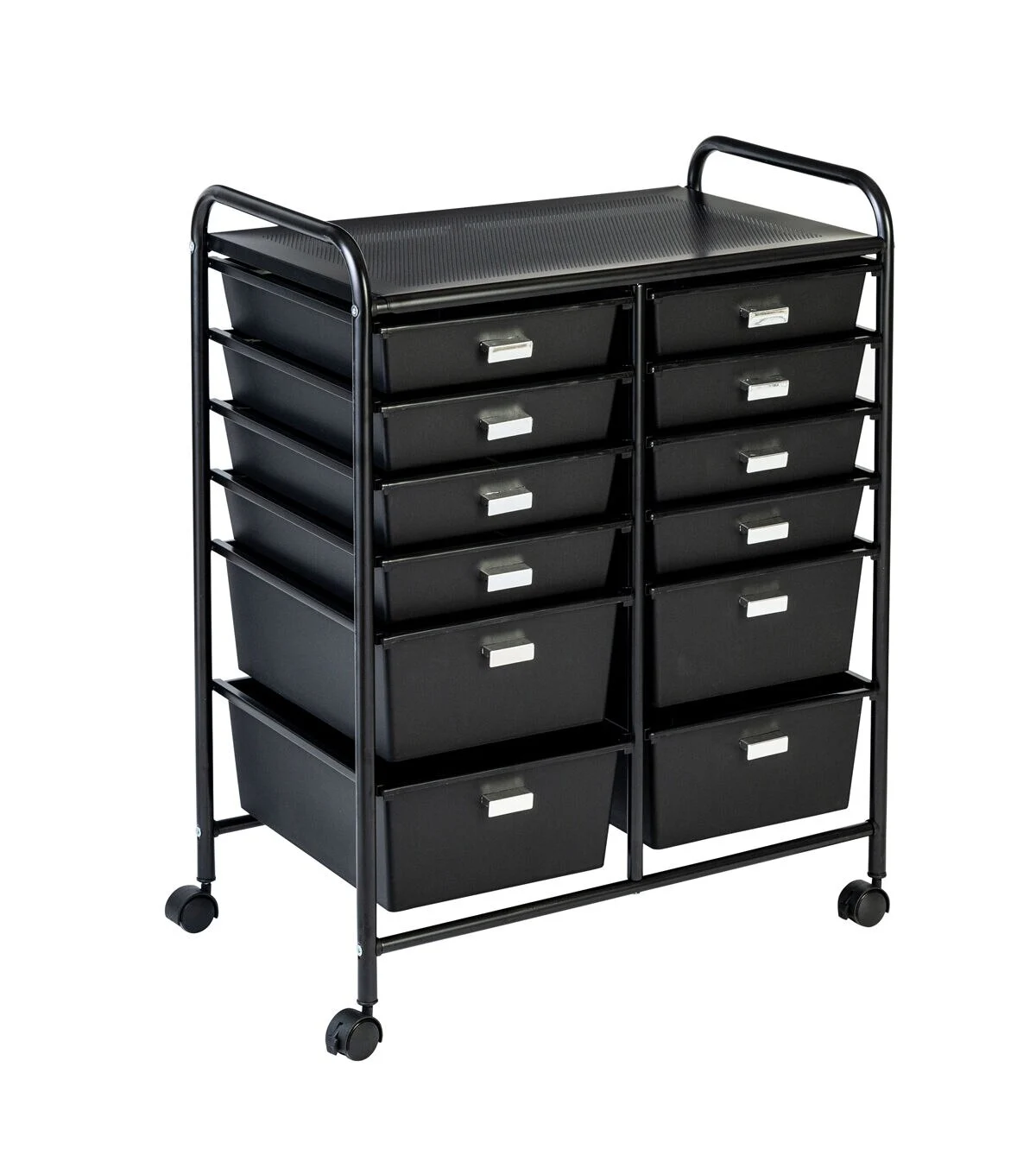 Honey Can Do 26" x 32" Black Craft Cart With Wheels & Metal Basket