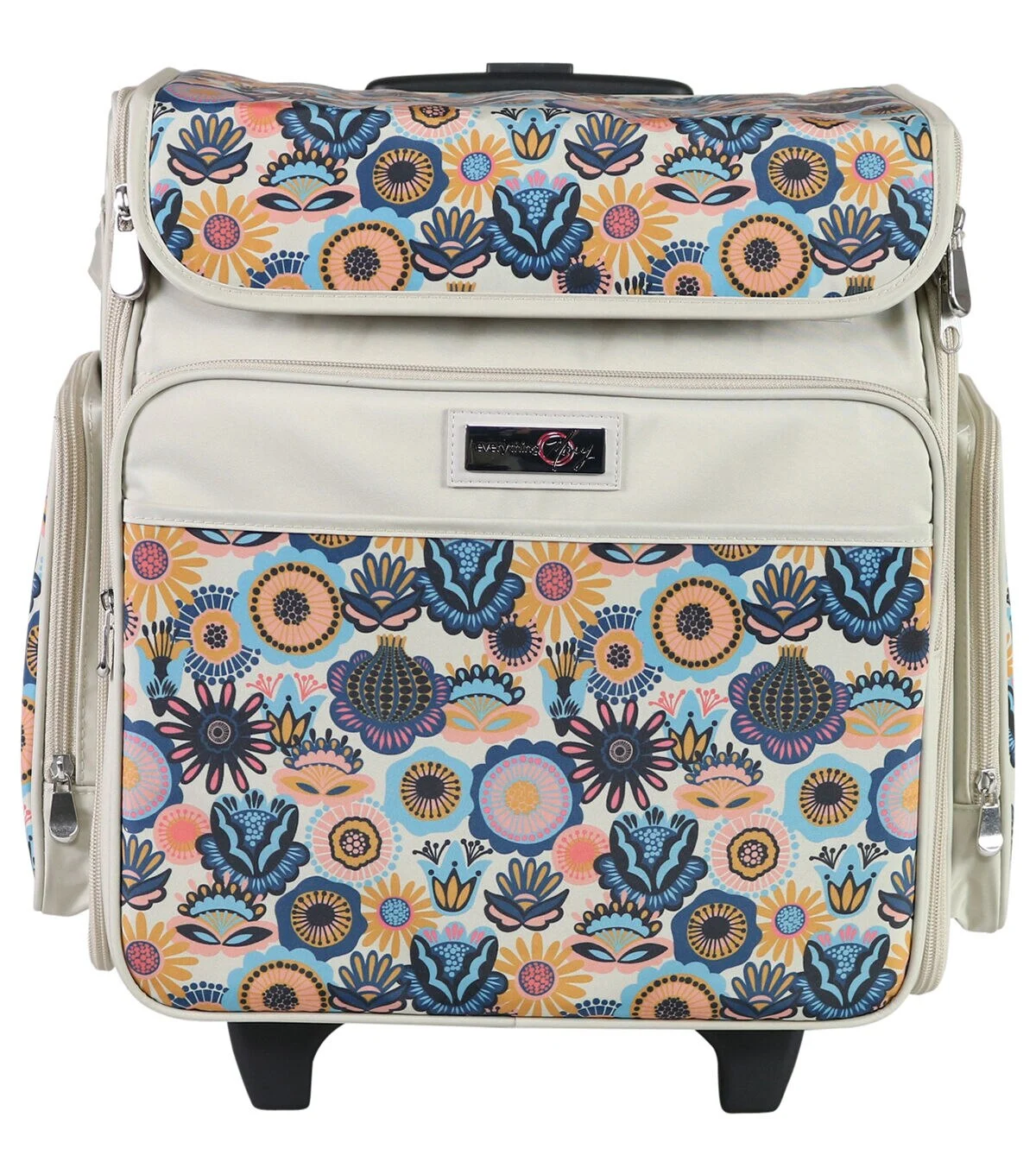 Everything Mary 15.5" Floral Collapsible Rolling Craft Bag