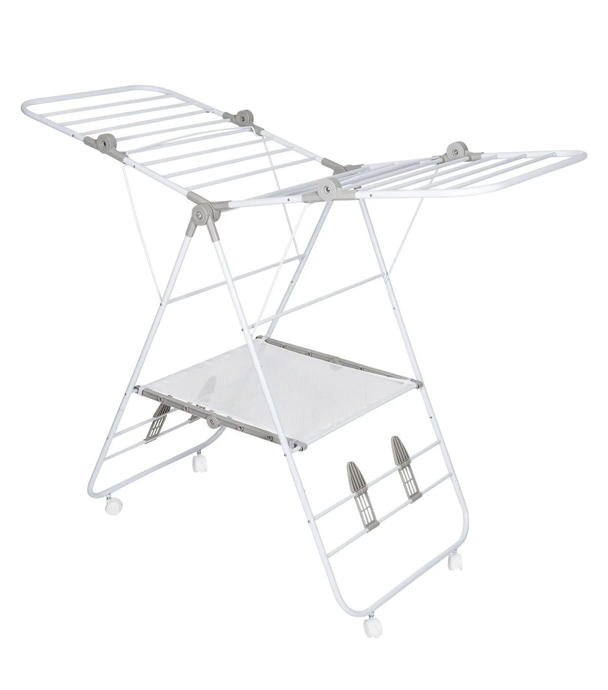 Honey Can Do 57" White Folding Gullwing Clothes Drying Rack With Wheels