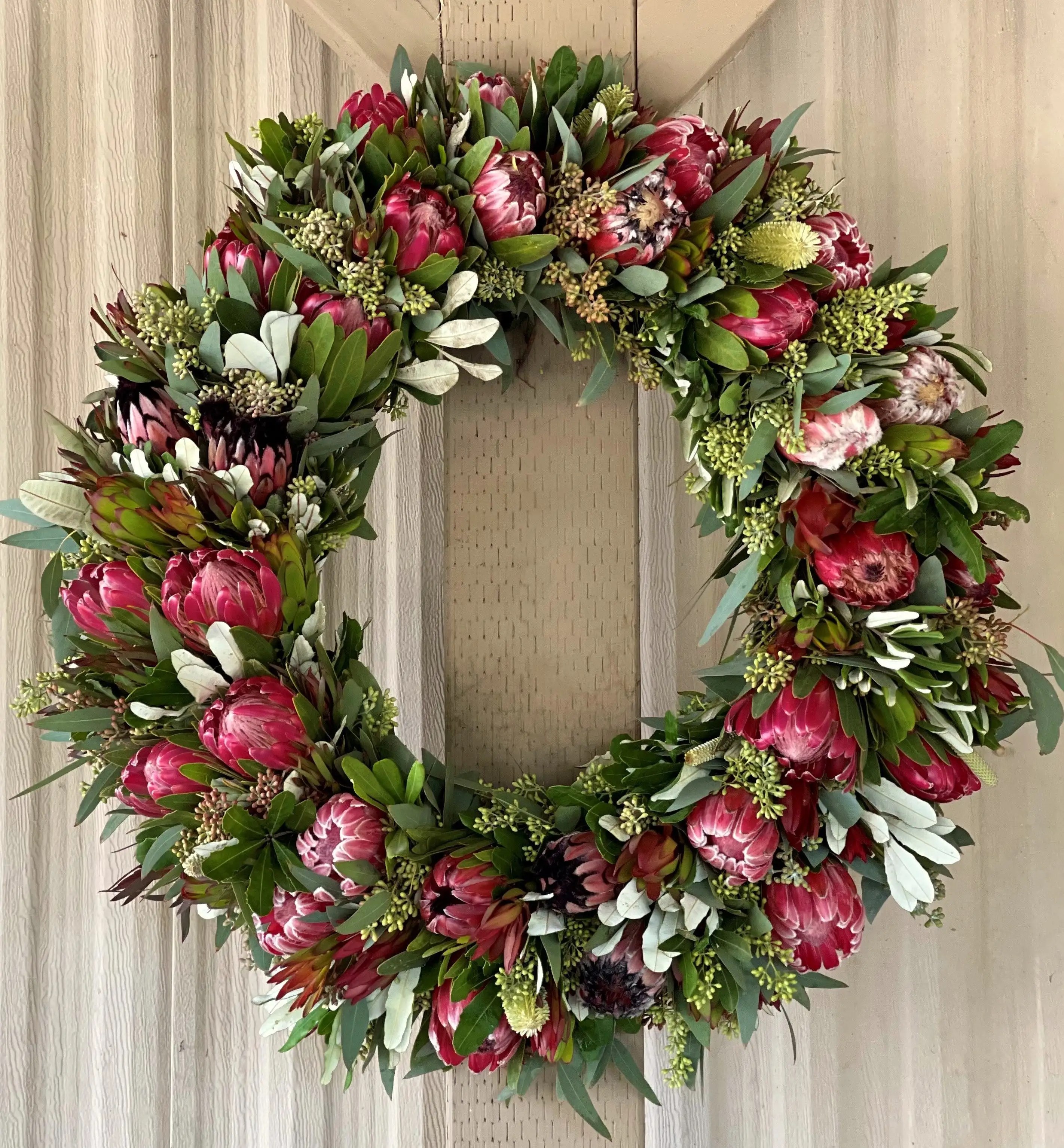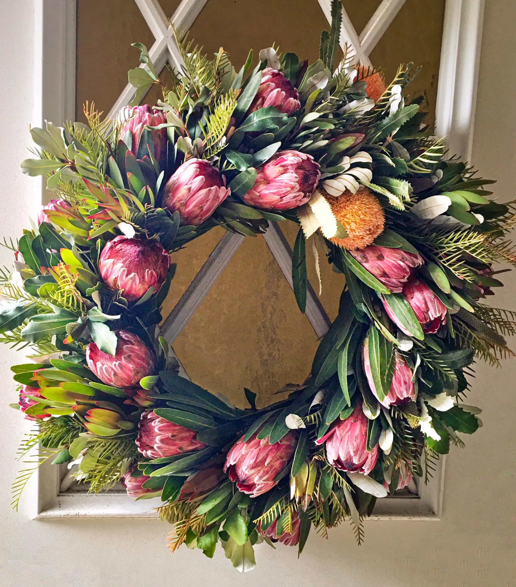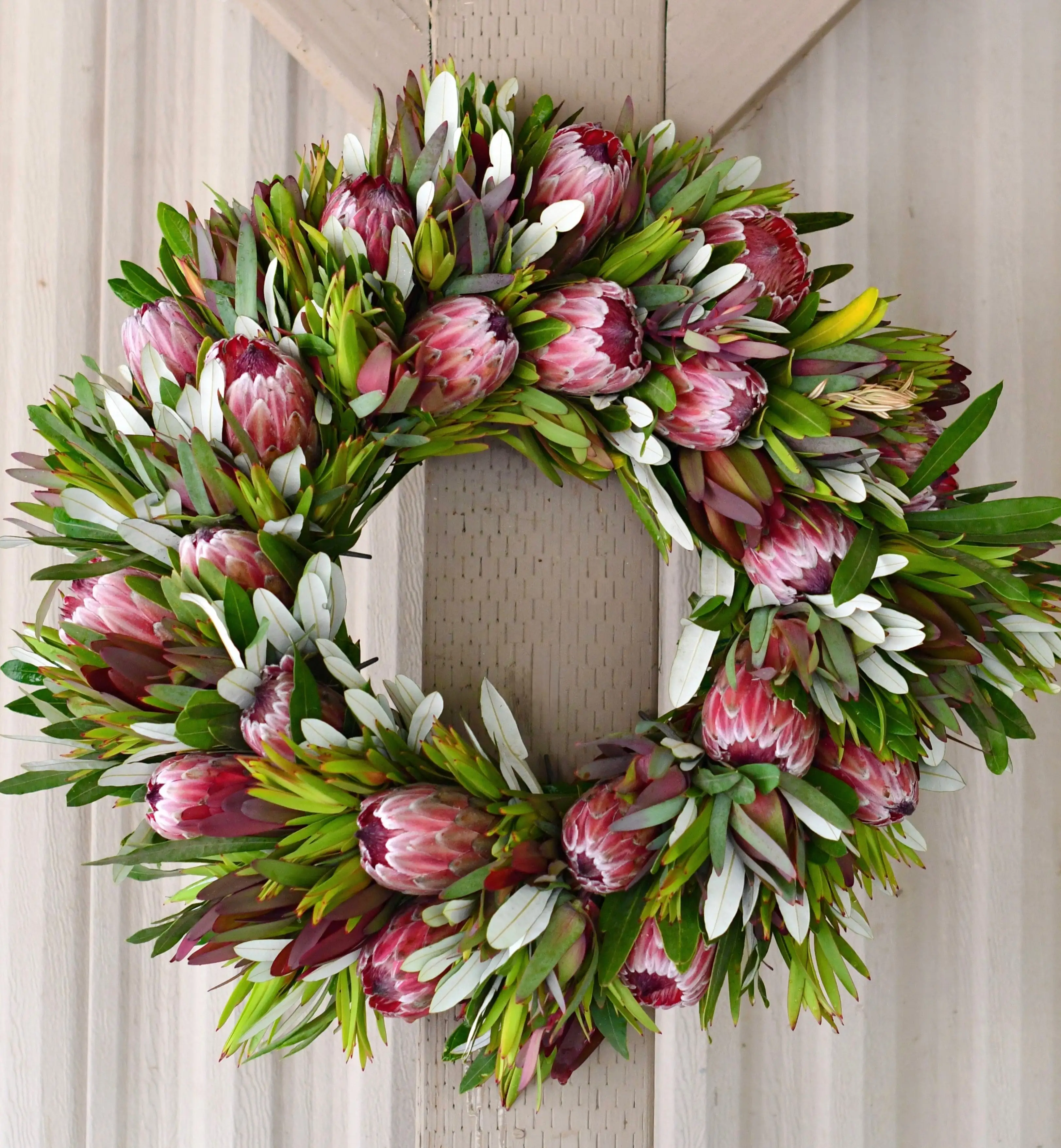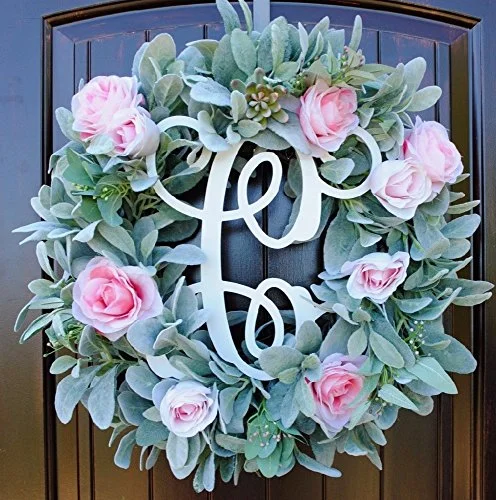 Rustic Round Wreath made of Green Lambs Ear, Succulents, and Pink Roses on Grapevine with Monogram Option
