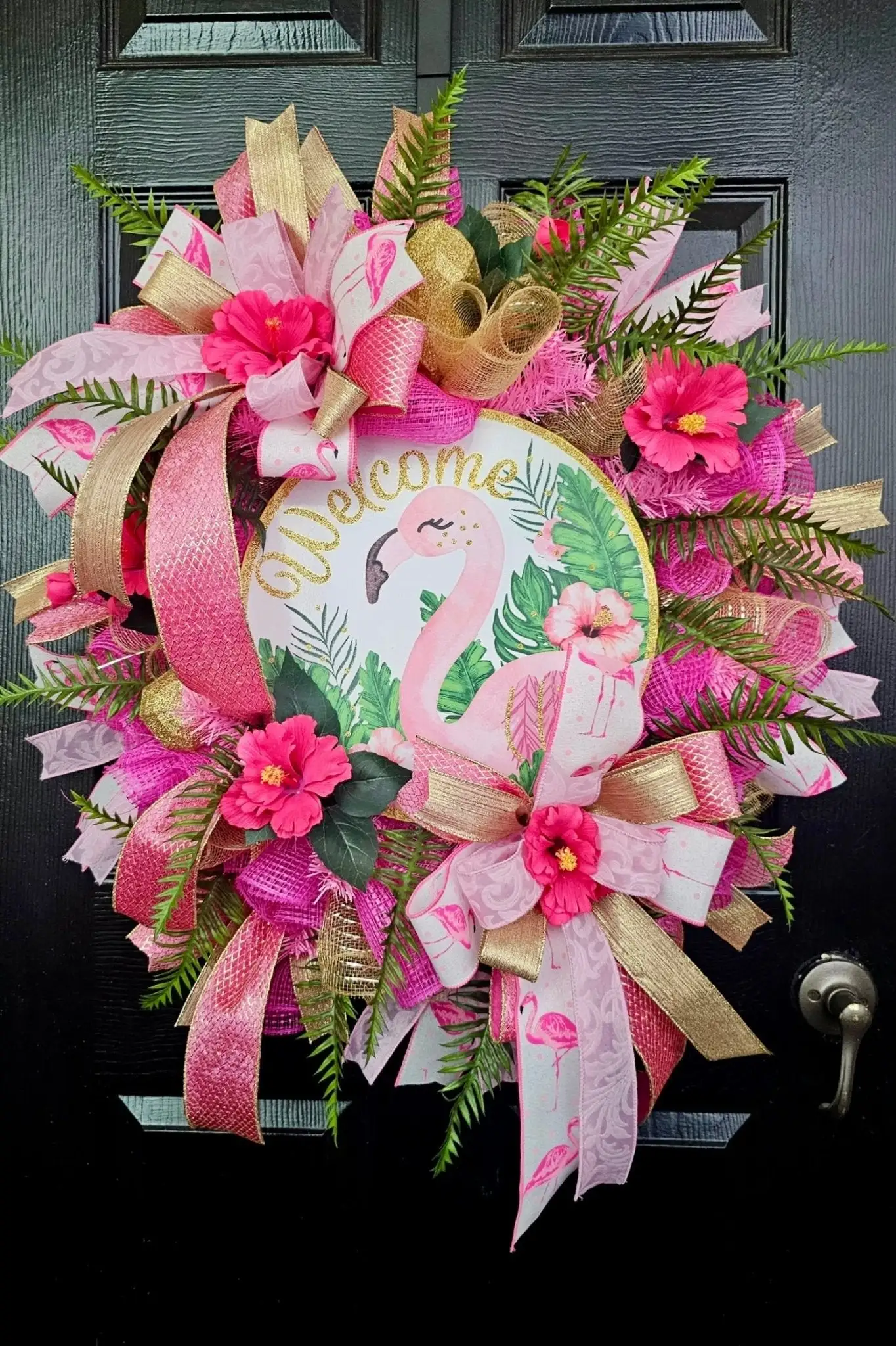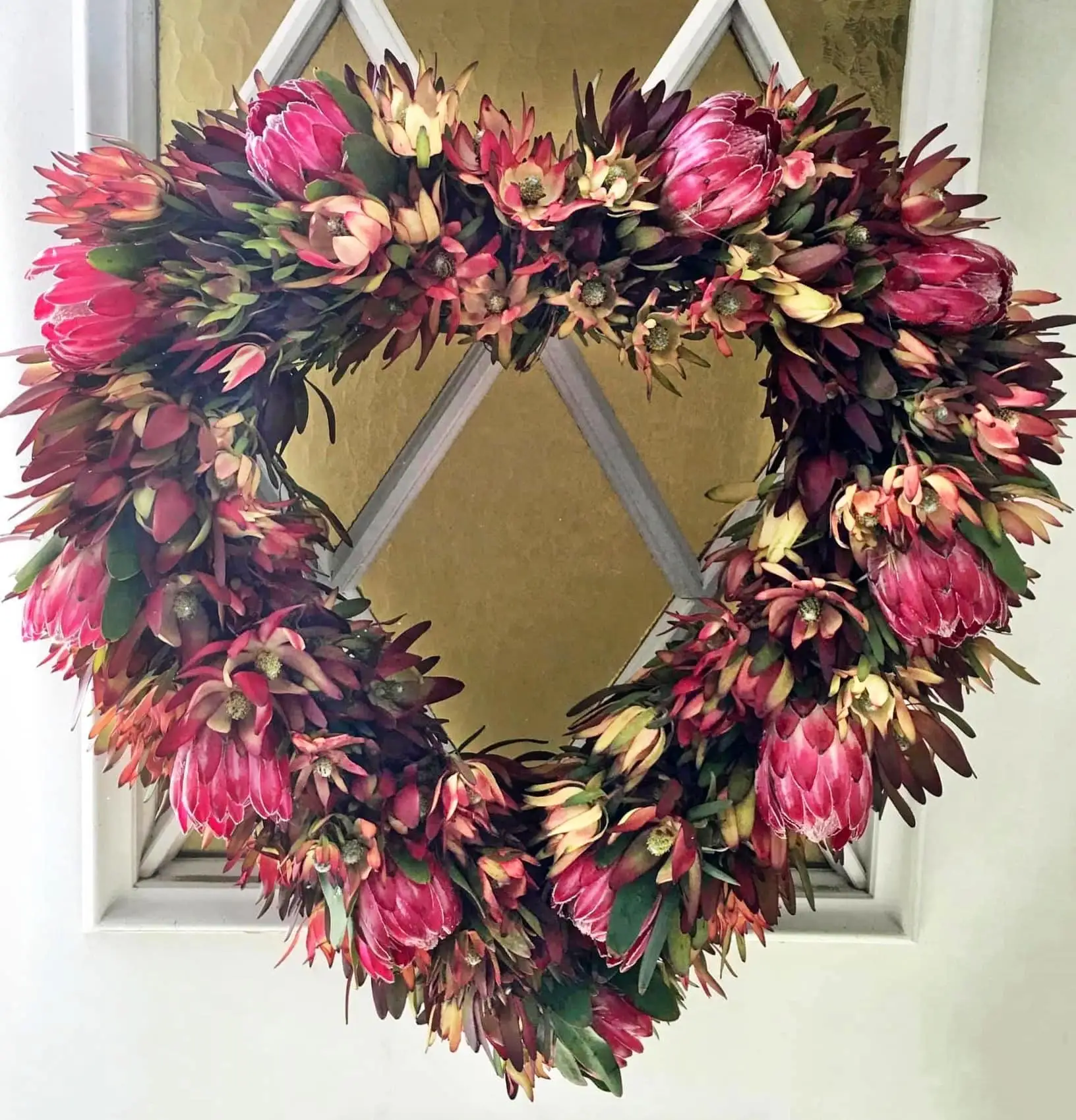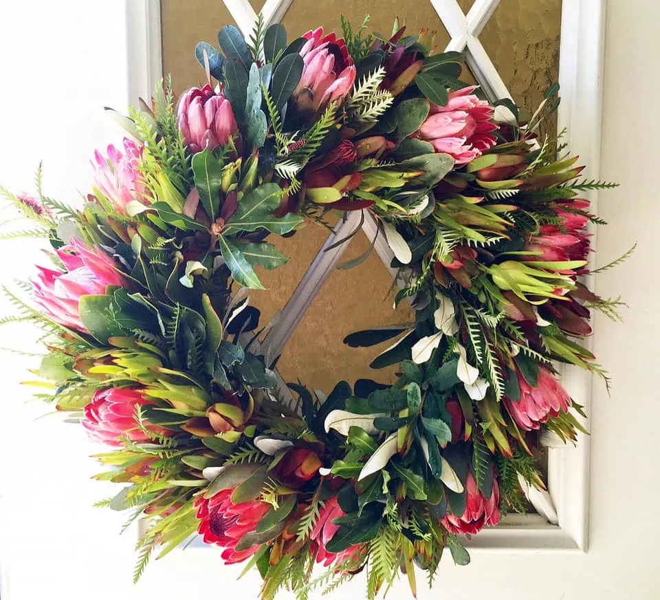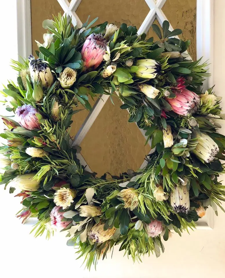Rustic Round Wreath made of Green Lambs Ear, Succulents, and Pink Roses on Grapevine with Monogram Option