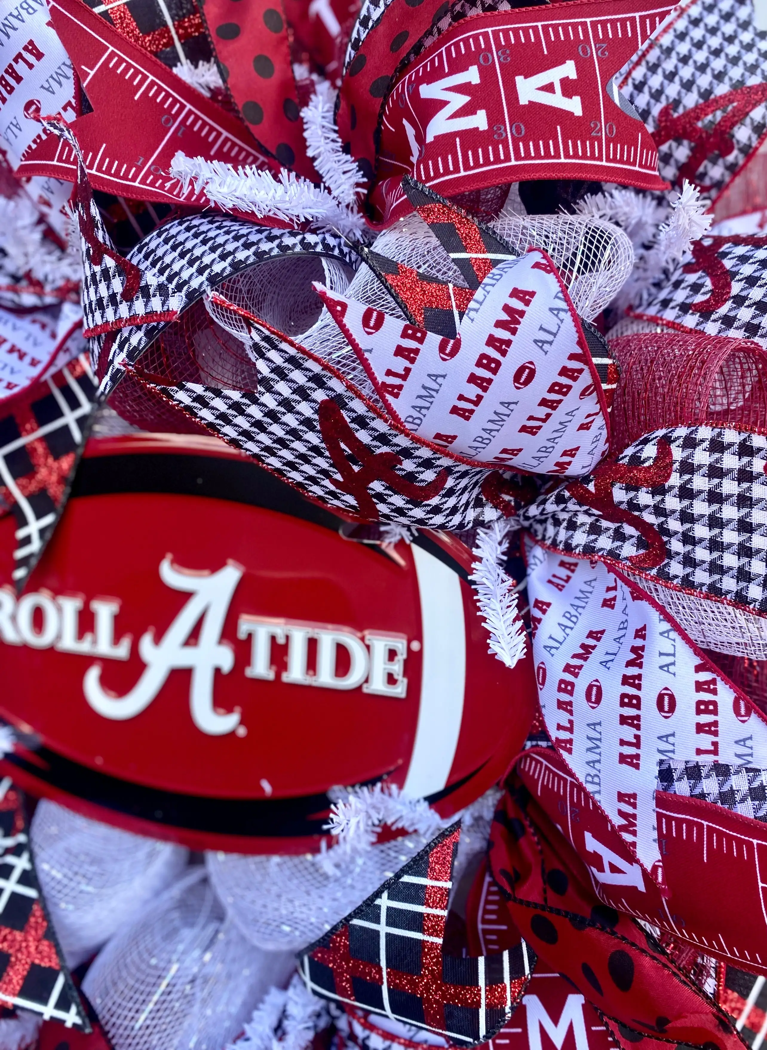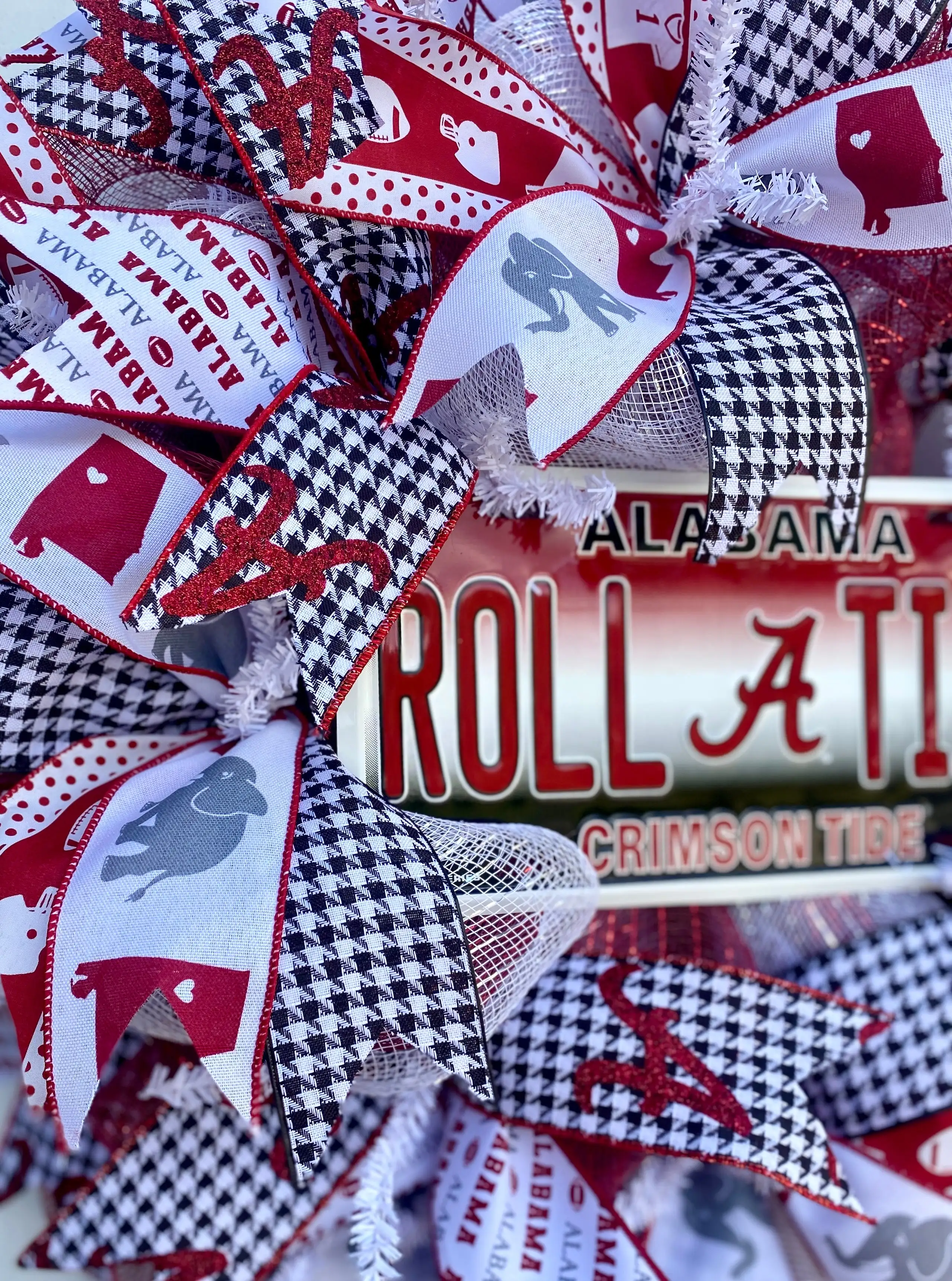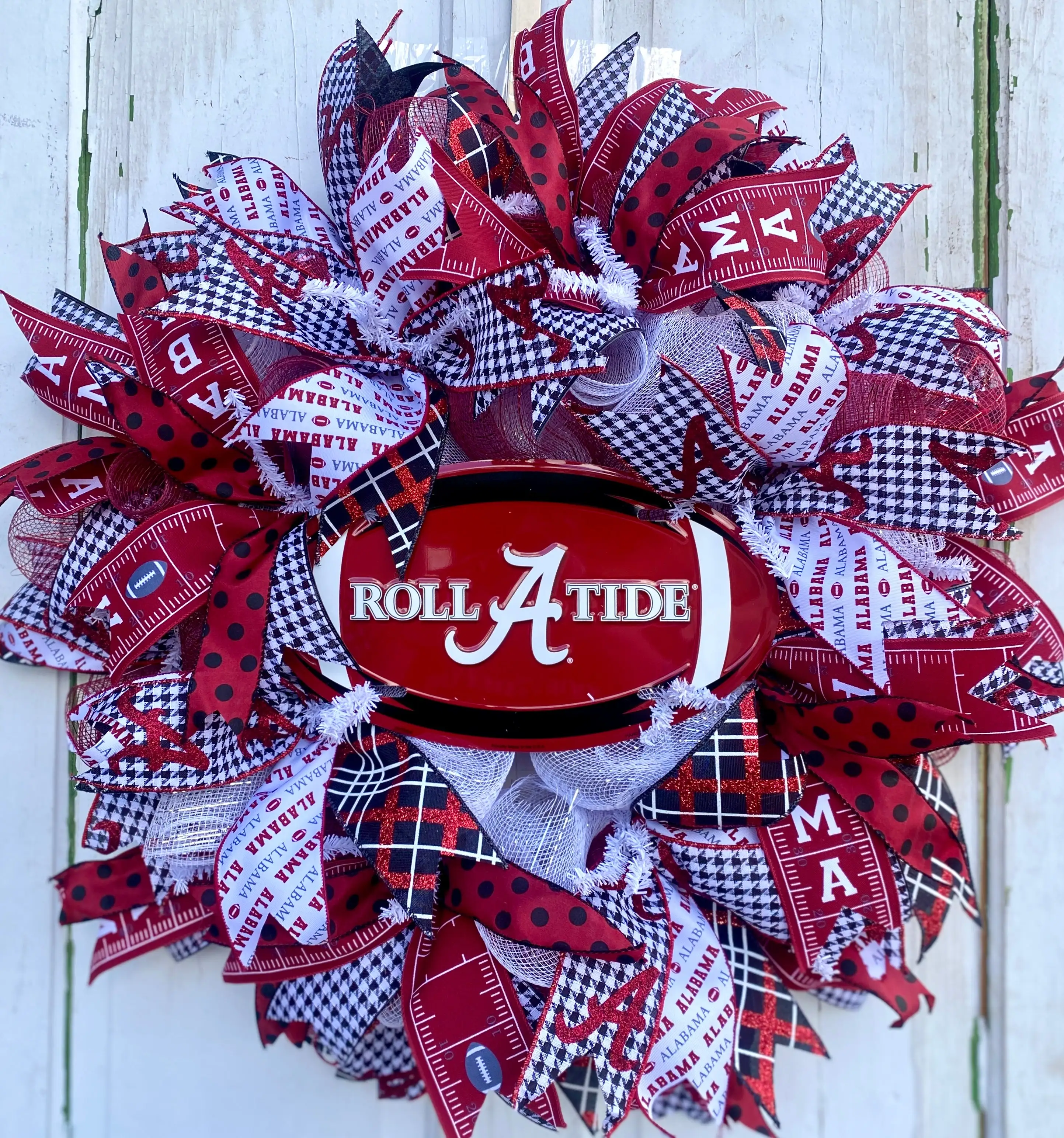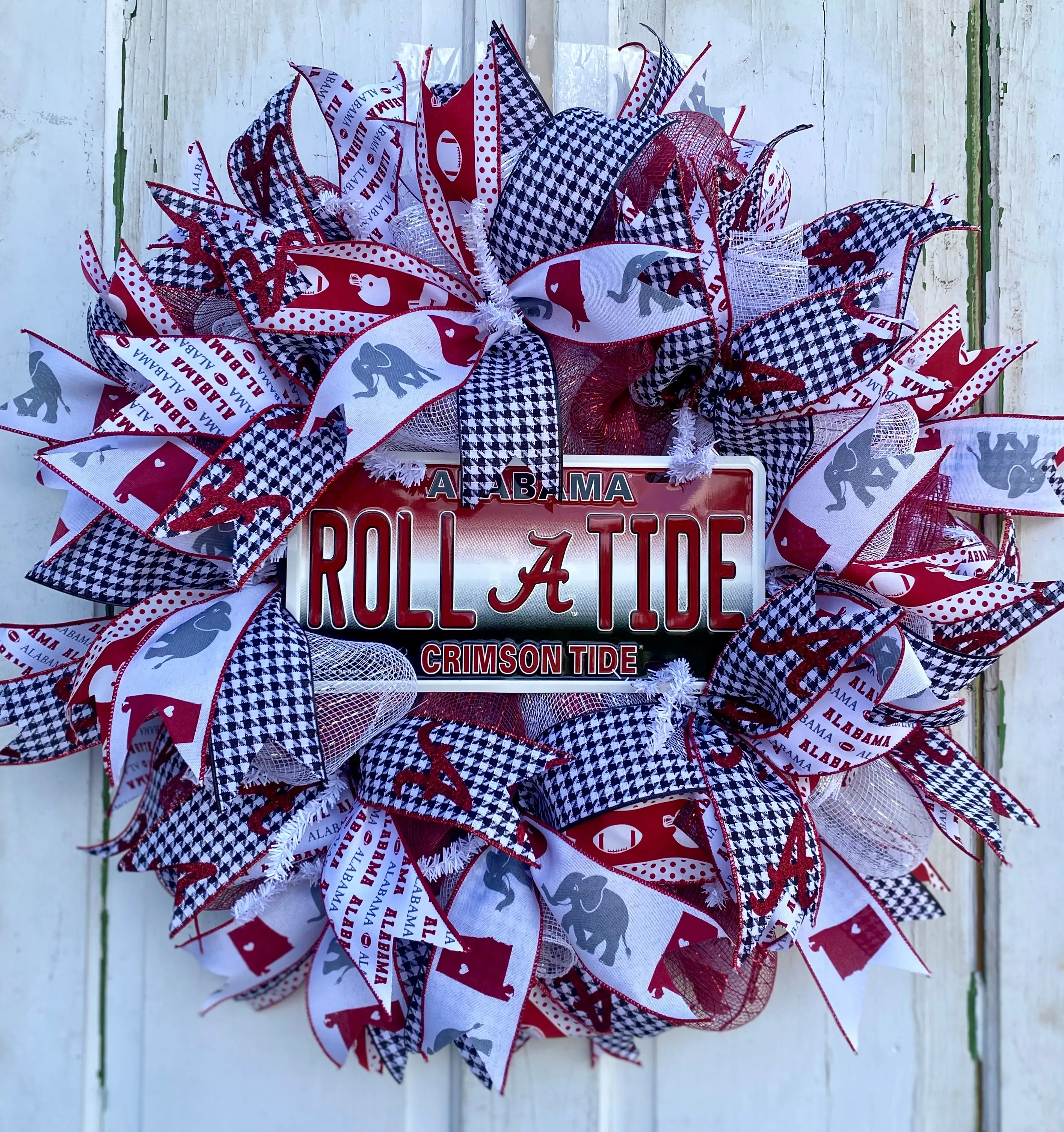 24" Diameter Round University of Alabama Football Wreath, Ribbon and Mesh,Fan Fall Welcome Gift