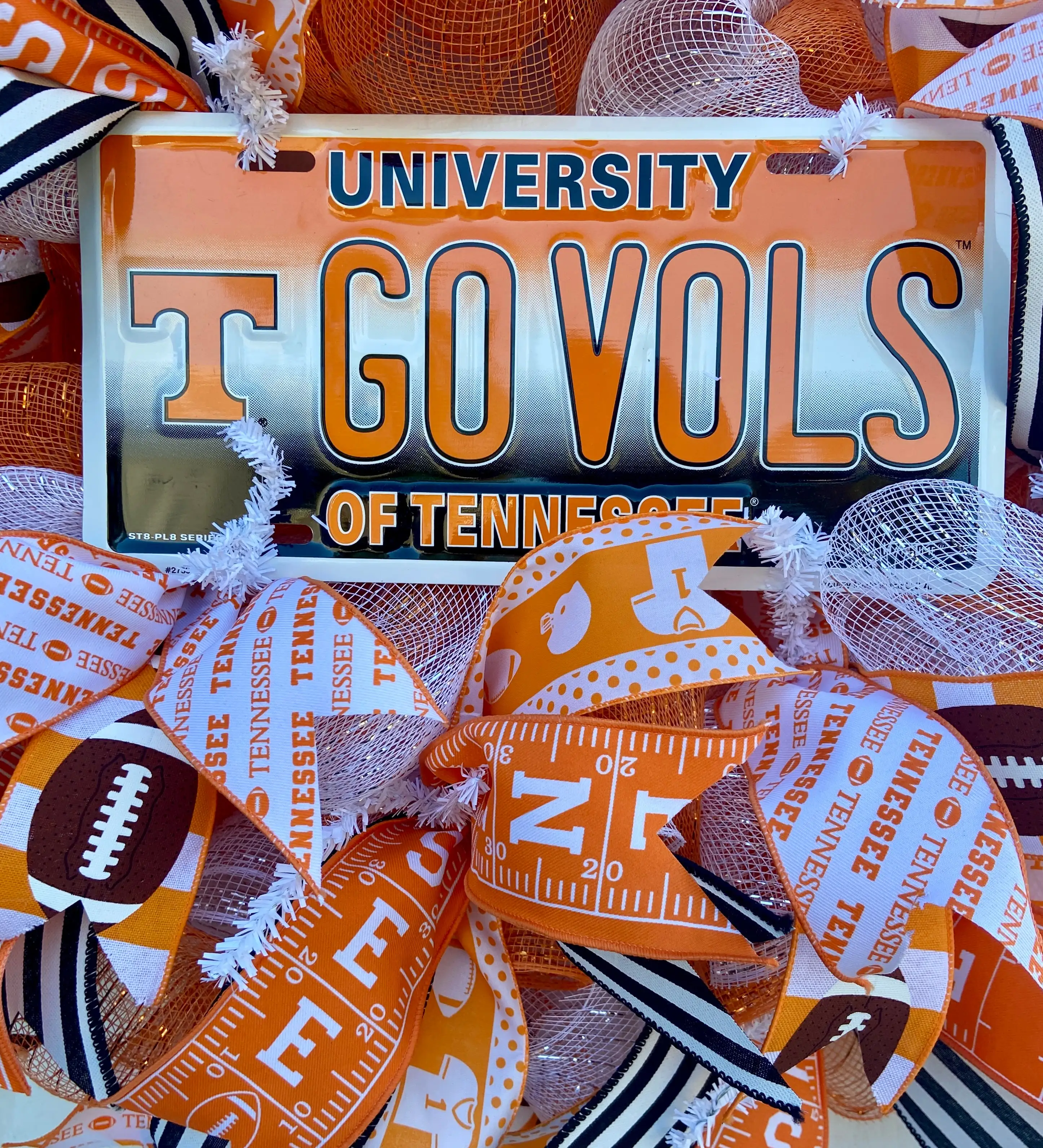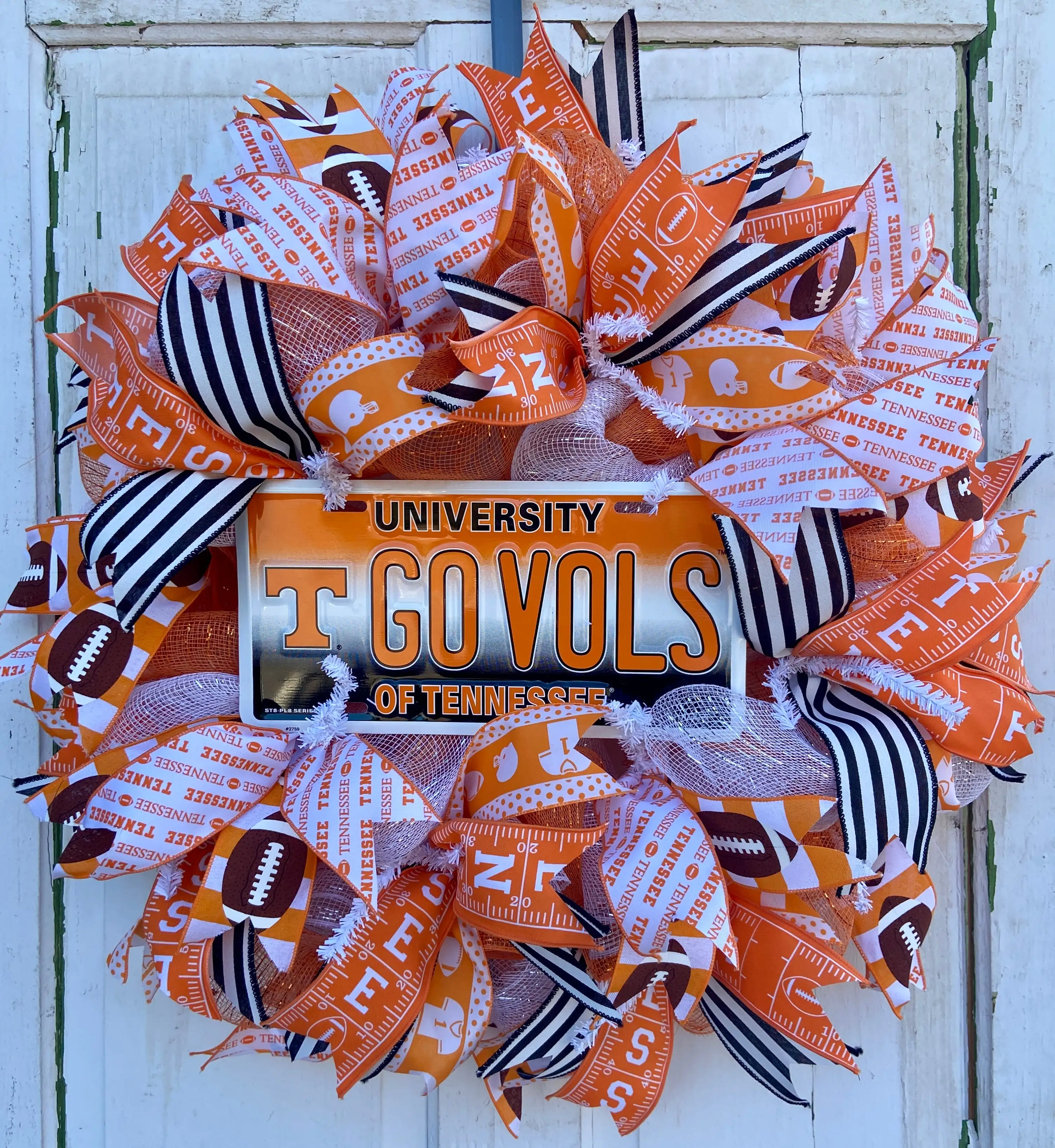 24" Diameter Tennessee football Front Door Wreath, Mesh and ribbon, Vols fan