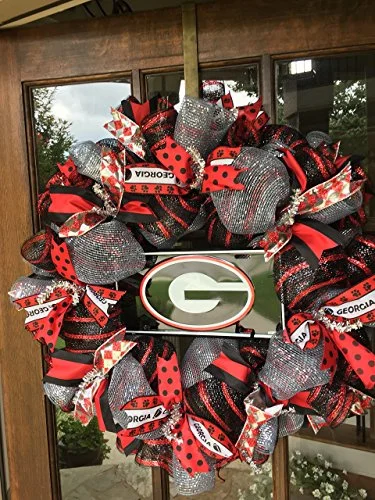 UGA Mesh Wreath with Car Tag Insert- University of Georgia- 24 Inch Diameter