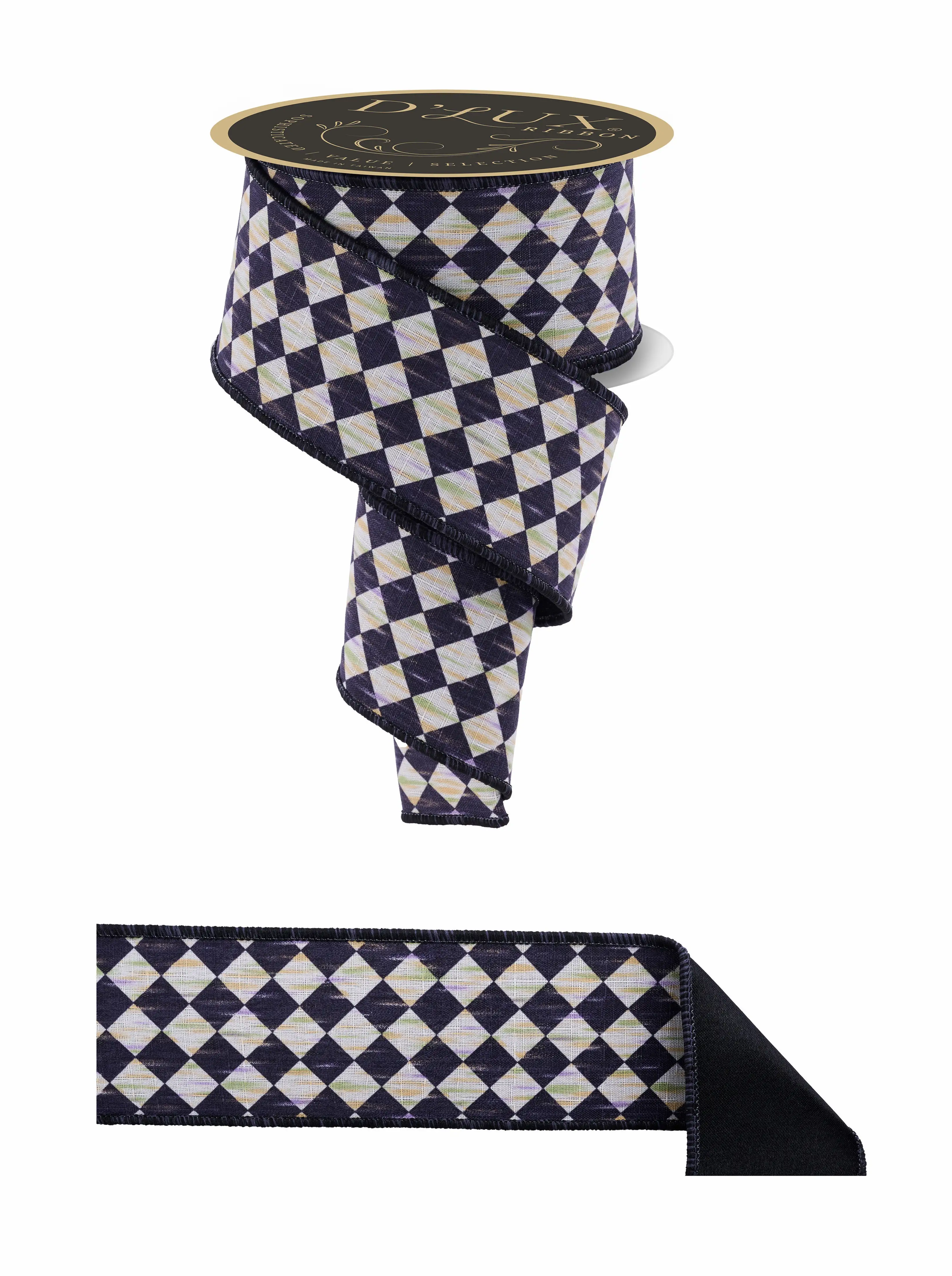 D'Lux Antique Diamond Fused Two-Sided Wired Ribbon for Bows, Wreaths, Gift Wrap, Crafts (Black, Cream 2.5" x 10 Yards)