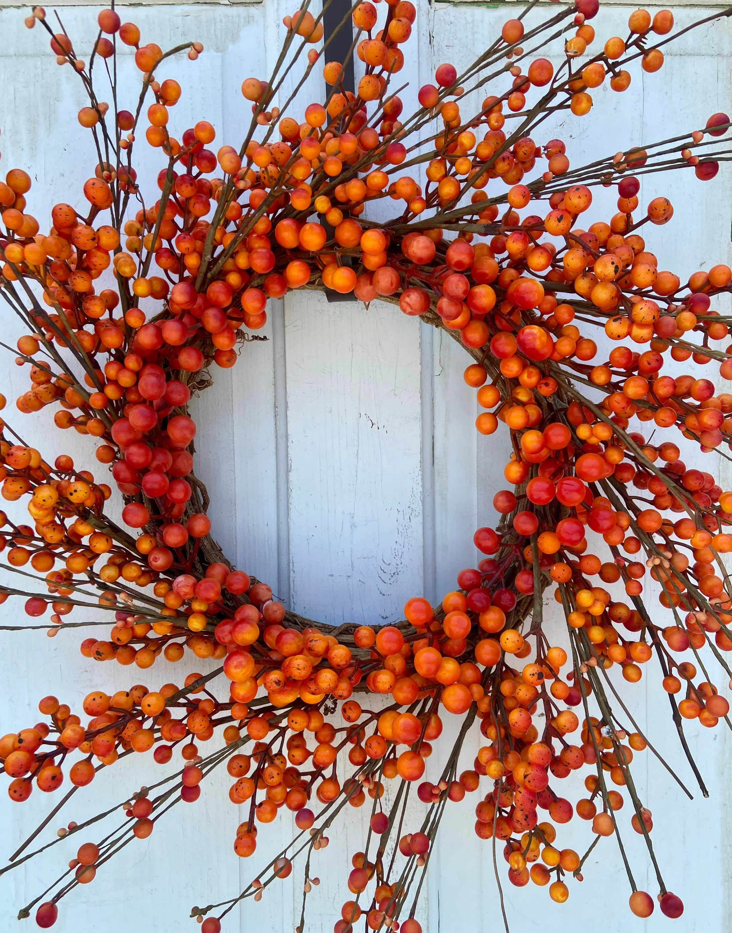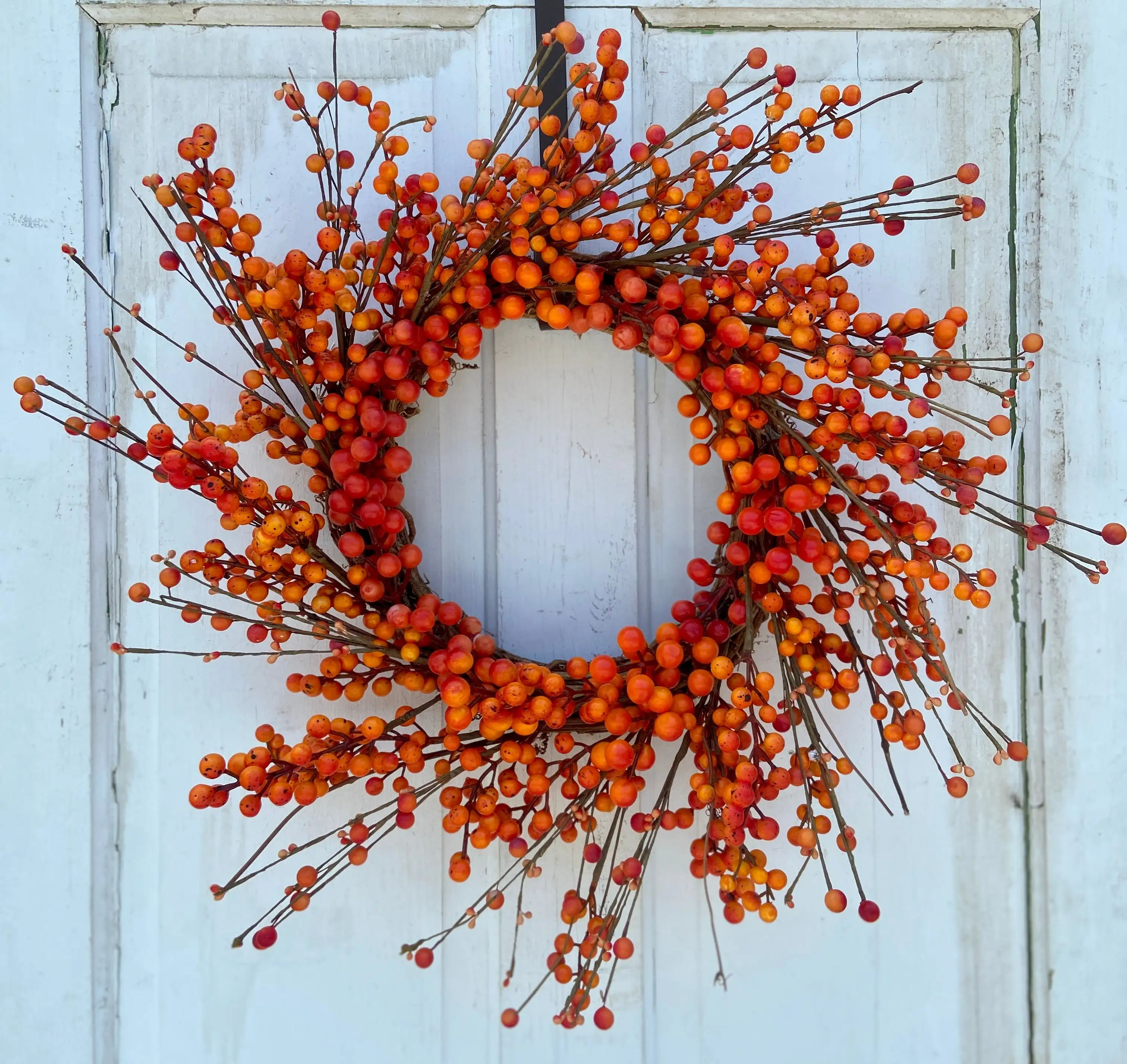 Thanksgiving and Fall Orange Berry Wreath on Grapevine Base in 22 Inch Diameter