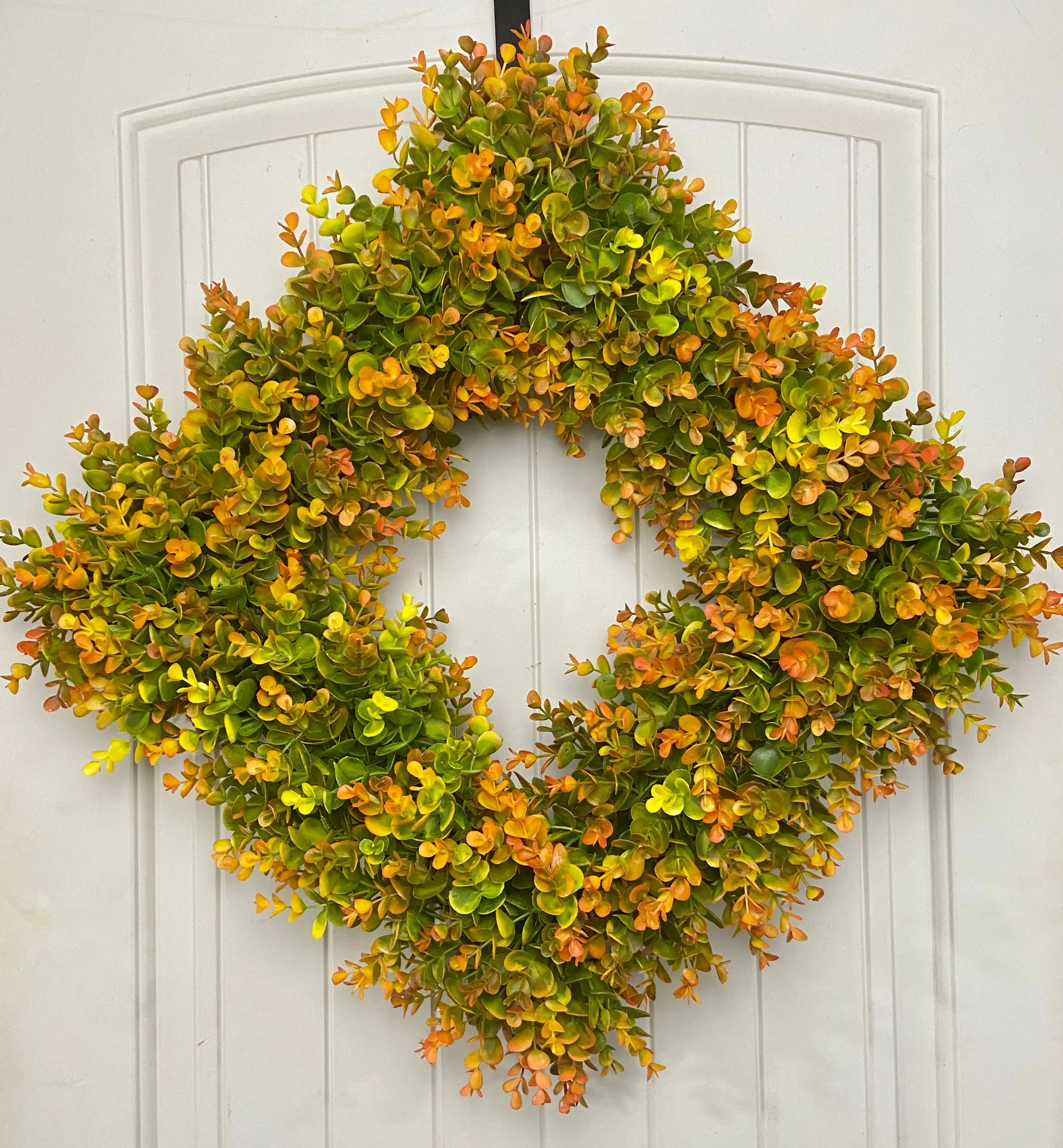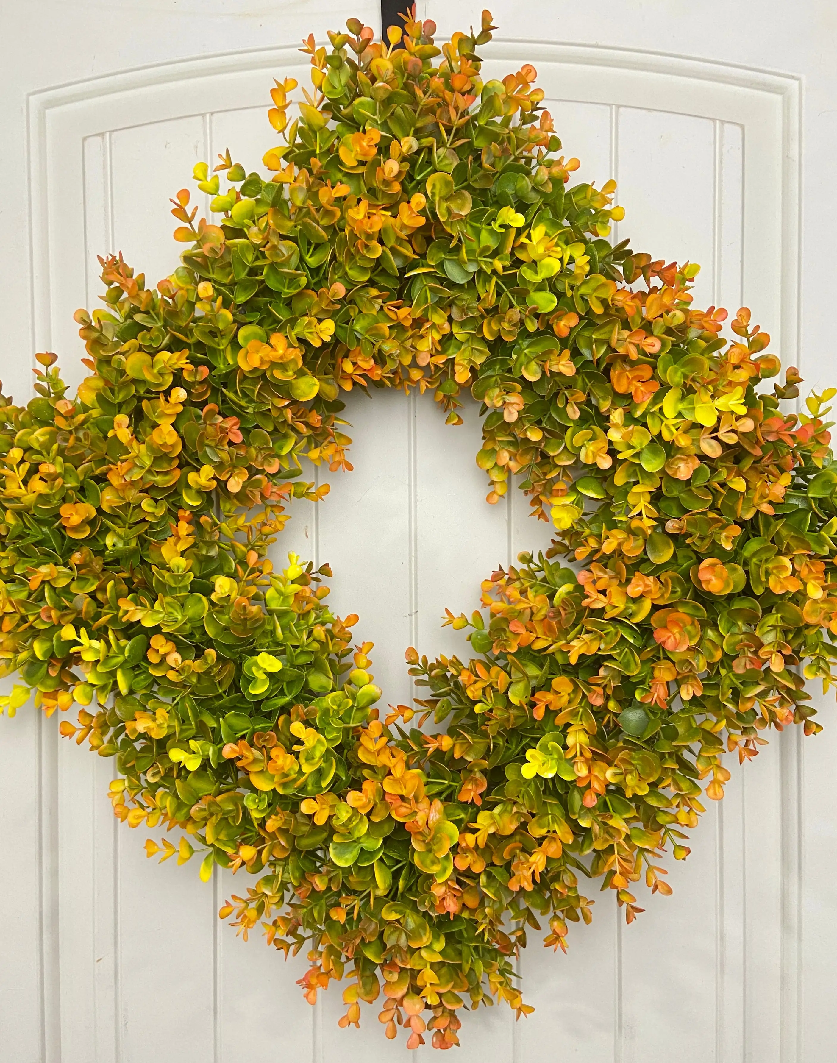23-24" Square Fall Faux Boxwood Fall Door Wreath on Green Foam Base, Outdoor, Porch, Patio