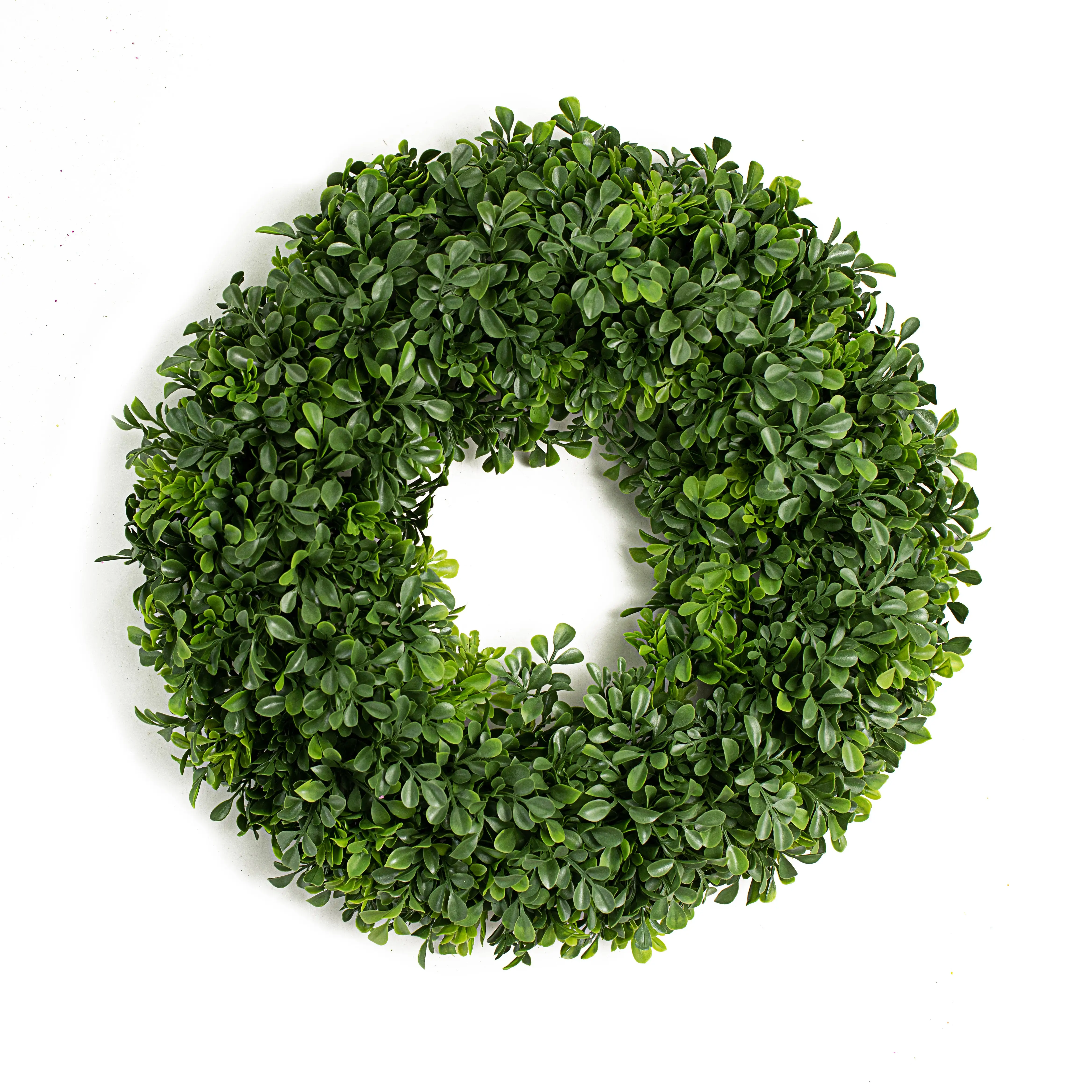 24" Diameter Round Real Preserved Boxwood Wreath-Natural