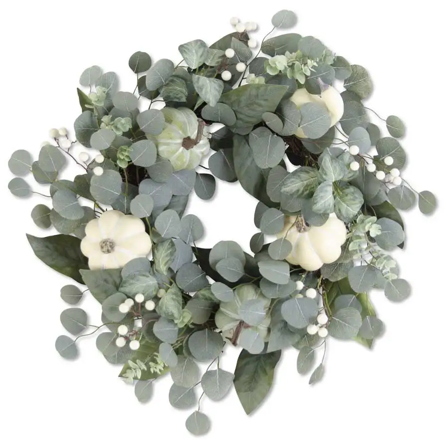24-27 Inch Cream Pumpkin & Eucalyptus Wreath, Green