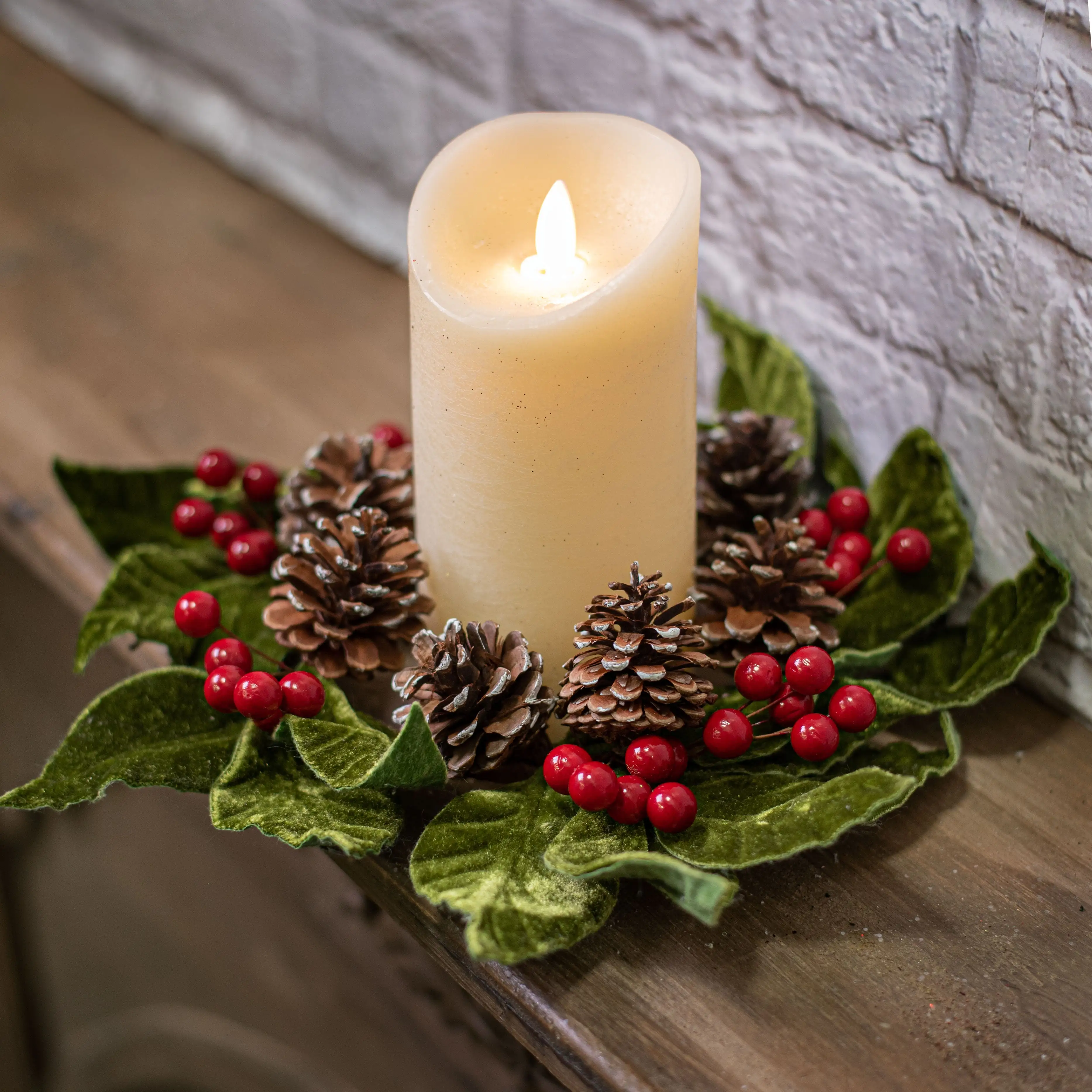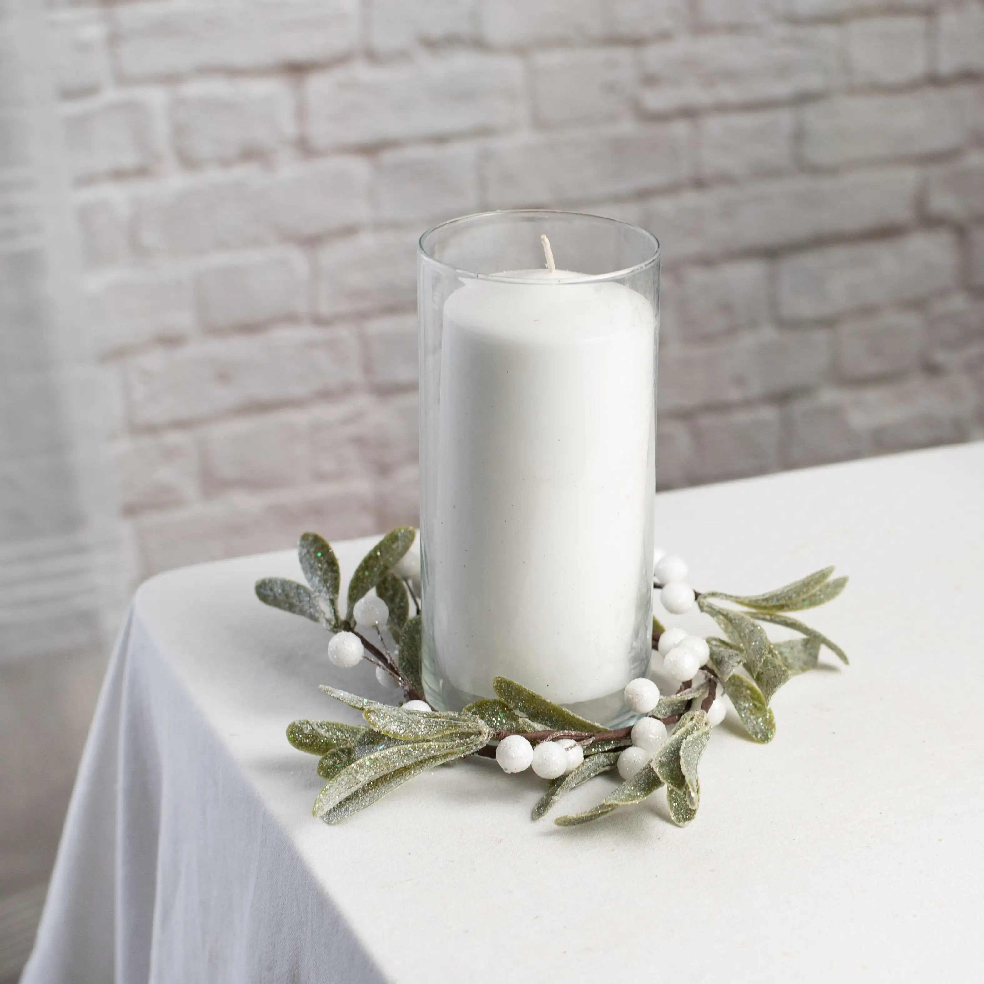 3.5" Snowy Glittered Mistletoe Candle Ring