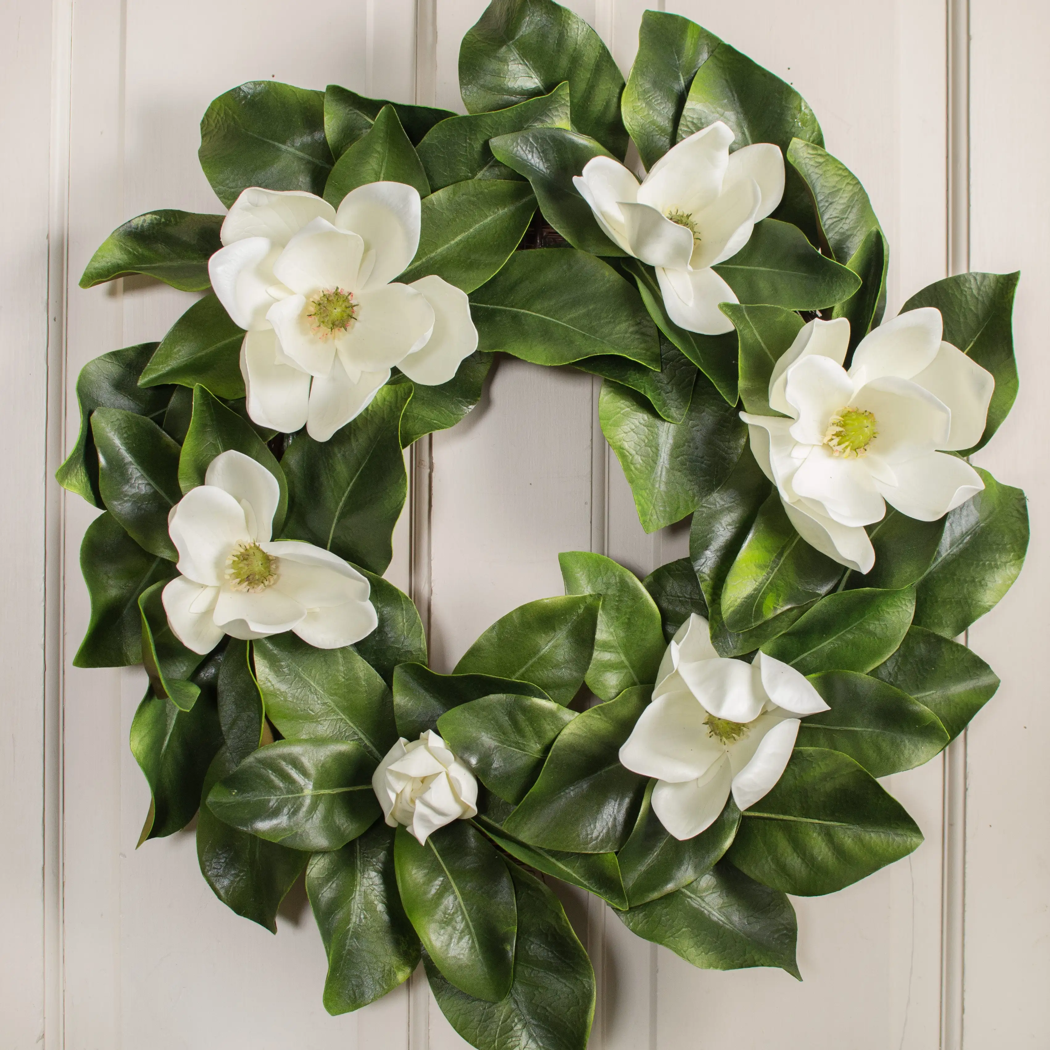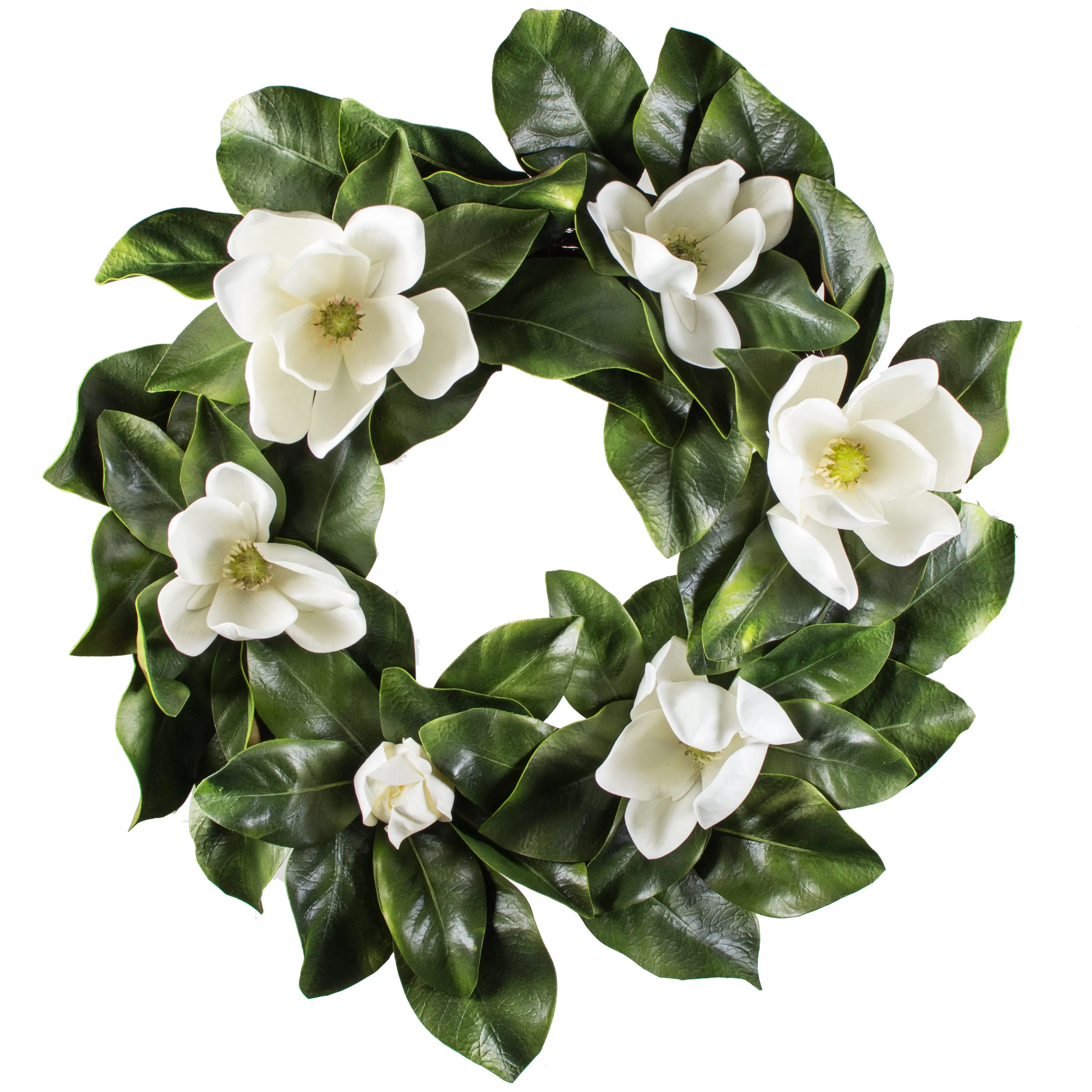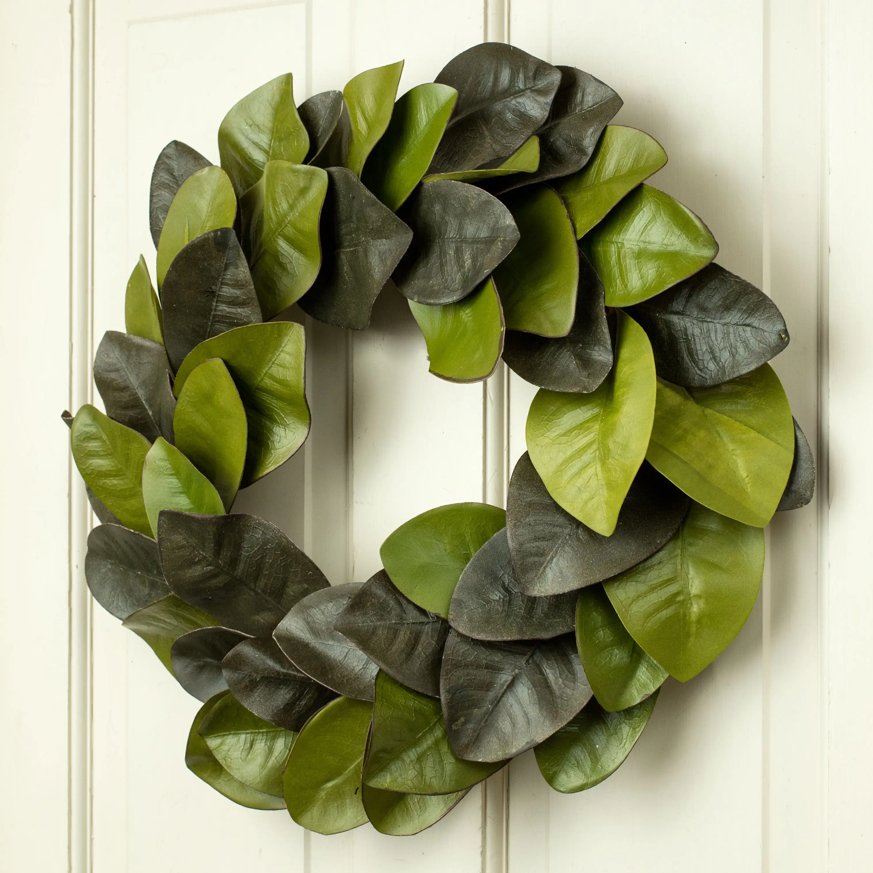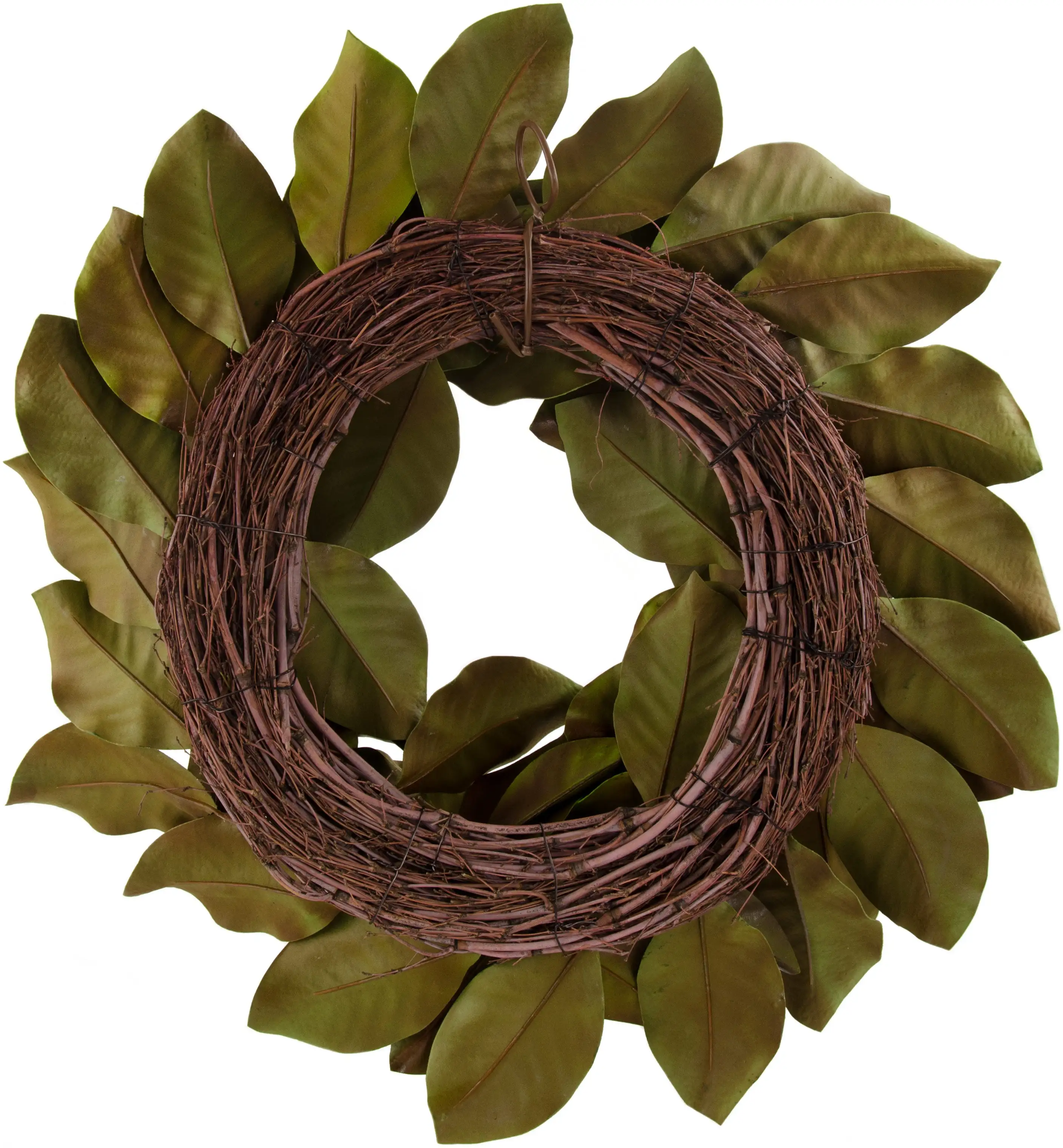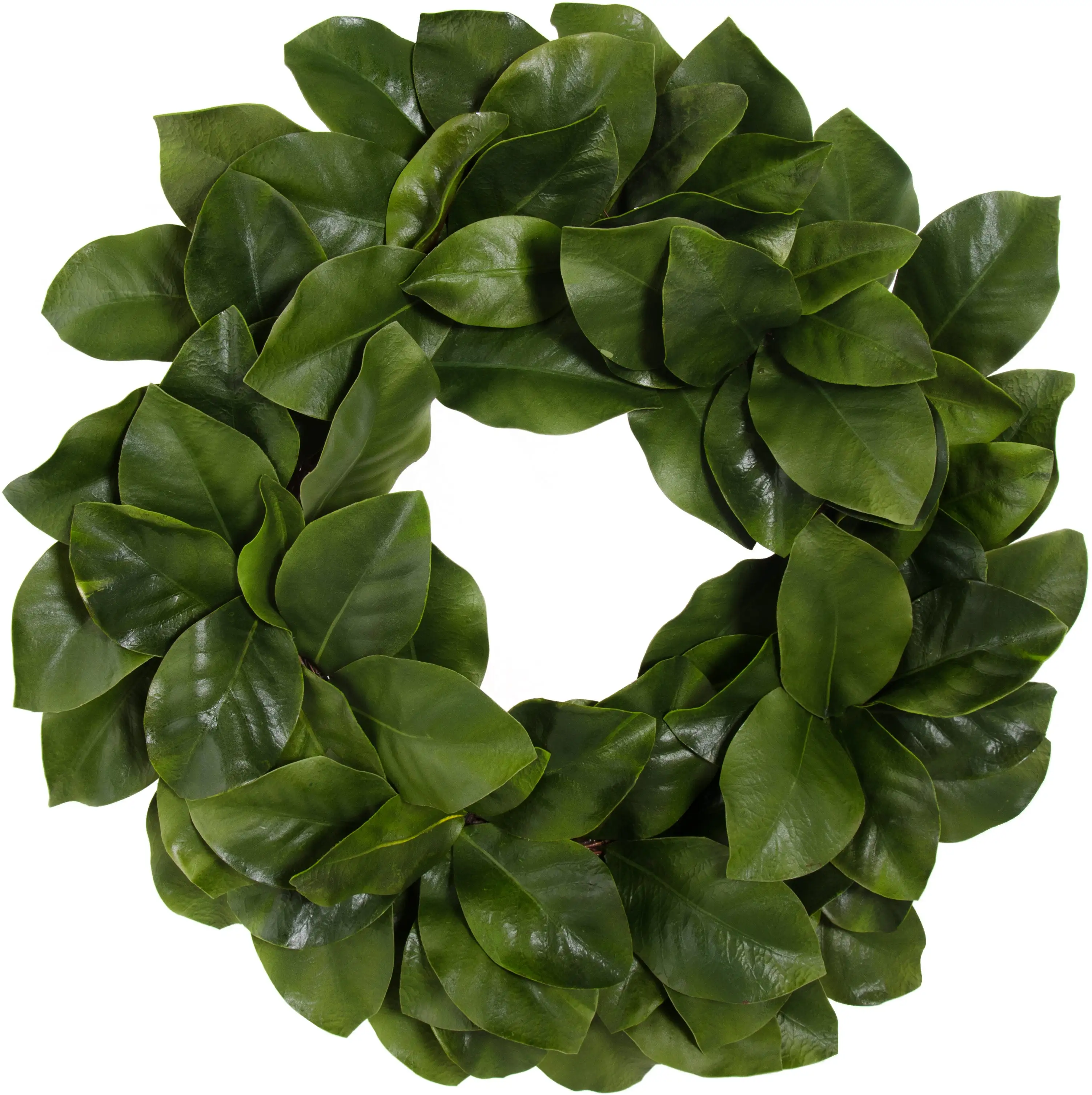 26" Artificial Magnolia Leaf Wreath: Realistic Green